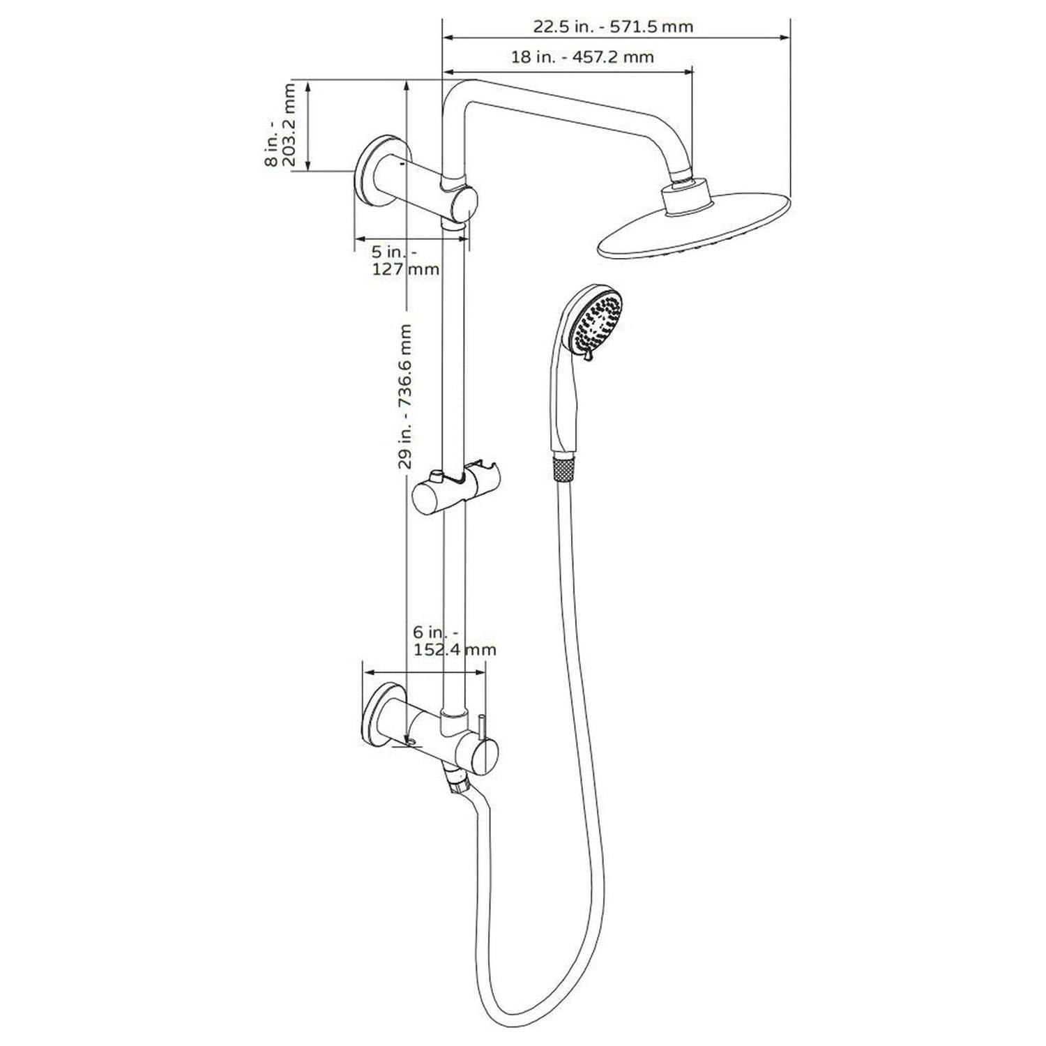 - 8″ chrome-faced rain showerhead with soft tips to clear mineral buildup for long lasting performance