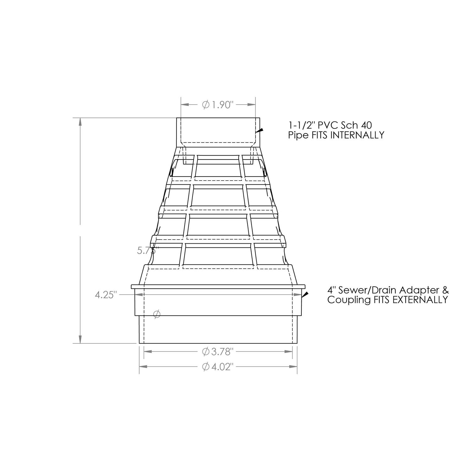- Fits 4 in. and 1-1/2 in. standard schedule 40 PVC piping