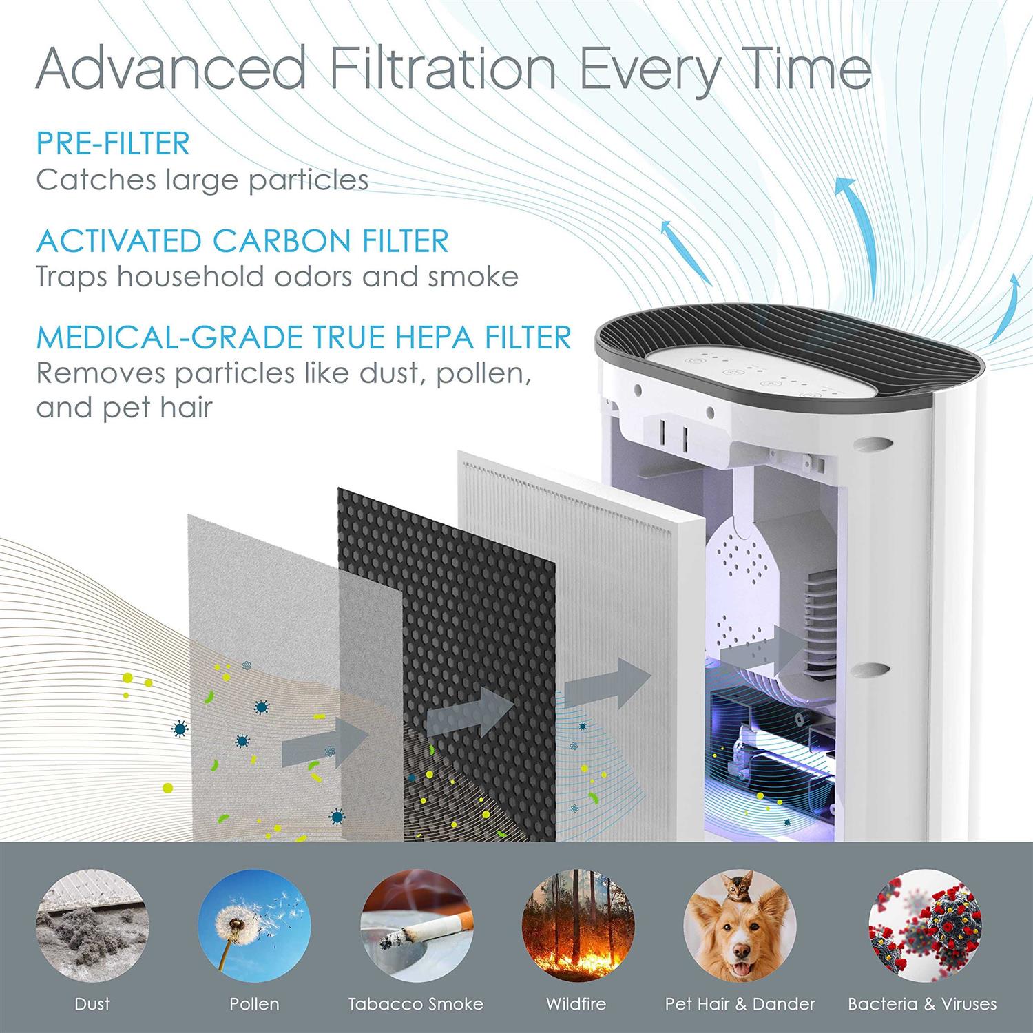 - COMPATIBILITY: 3-in-1 air filter designed for our PureZone True HEPA Air Purifier in white or mist colors (sold separately)