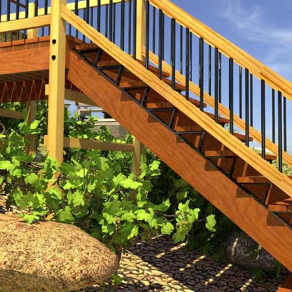 Build a staircase, step by step with this universal stringer. It attaches to a piece of structural lumber of 2 in. x 4 in., 2 in. x 6 in., 2 in. x 8 in. or 2 in. x 10 in. So you can customize according to your own stair height. With its steel structure, this stair frame provides stability, durability and does not require any maintenance. Includes 2 supports and installation screws. Baked powder coating finish provides excellent rust resistance. Powder coating heavy gauge steel with screws Universal stair steps Excellent rust-resistance Convenient and efficient way to build your own stair stringer Bring grace look to your dwelling by installing this Pylex Steel Universal Stringer Black.