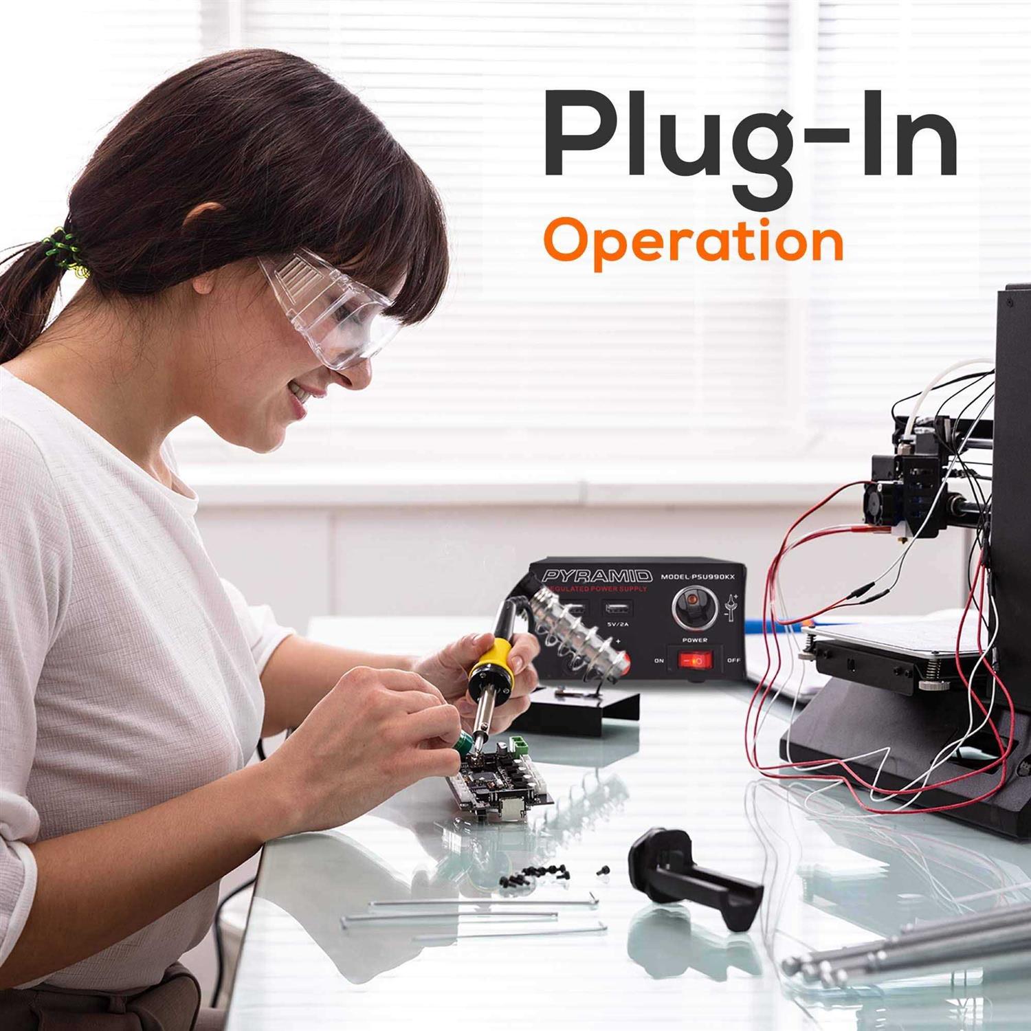 Plug into a standard port for constant DC power that converts when necessary with the flick of a switch. There are 2 USB ports, 2 banana jack plugs, and a cigarette-lighter adapter, giving you a wide range of output options to feed all your equipment and even charge your mobile devices. Maintain a tidier, safer work area with the Pyramid 4.5A 5V/2A AC to DC Power Converter Garage Bench Power Supply providing all your power needs in one convenient place.