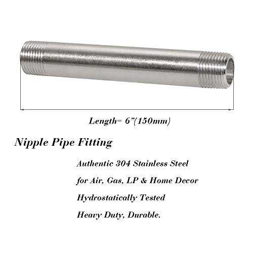 Quickun 304 Stainless Steel Nipple Pipe Fitting, 1/2″ NPT x 1/2″ NPT male Malleable Nipple Cast Pipe 6″ Length