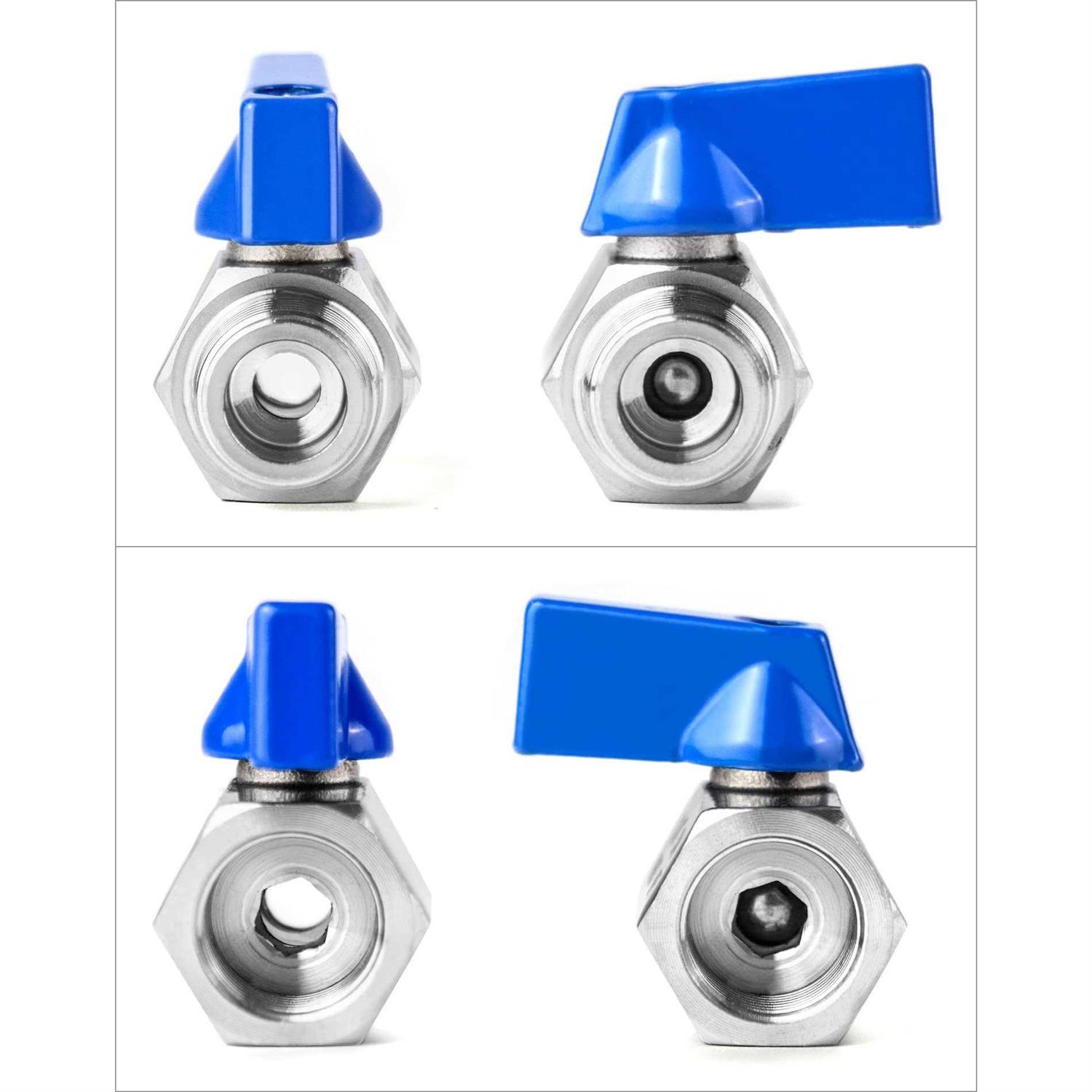 QWORK Mini Ball Valve, 4 Pack 3/8″ NPT Thread Female and male 304 Stainless Steel Shut-Off Valves