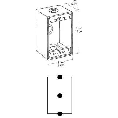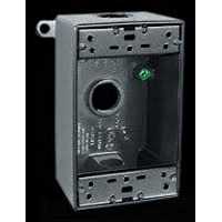 Rab 1-Gang Weather-proof outlet box with lug, has maximum capacity of 18.3-Cubic-Inch. This wall or pole mount outlet box for wet locations, has three 1/2-Inch hubs. The outlet box in black color, has precision die-cast aluminum construction. The outlet box includes closure plugs, green hex slotted washer head ground screw and flexi mounting lugs. The outlet box is UL listed.