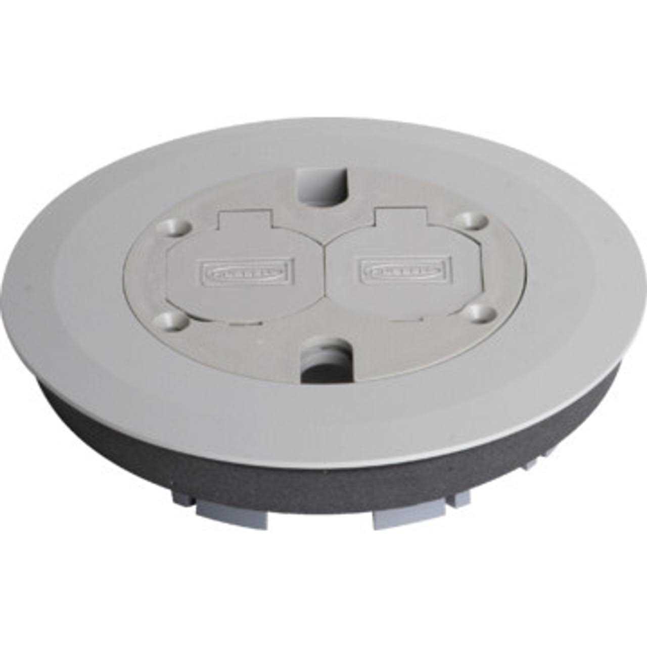 Raco non-metallic gray cover floor box kit in designed to be used with RACO 5511 non-metallic concrete pour floor box. Kit includes non-metallic adapter (needed for us with 5511 floor box), gasket, gray carpet flange and gray duplex cover. Completes flush installation on carpeted flooring.