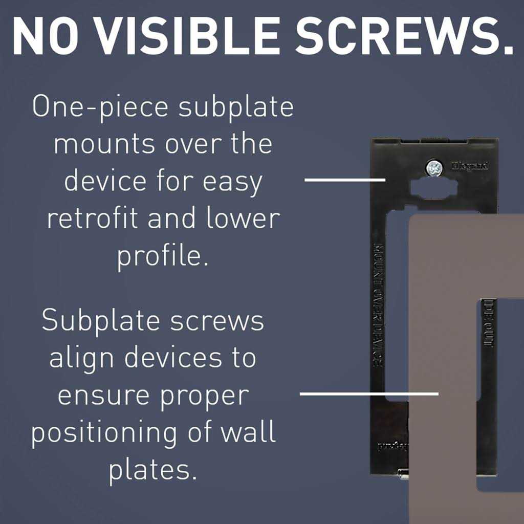 - One-piece subplate mounts over the device, allowing you to simply snap on the wall plate with ease