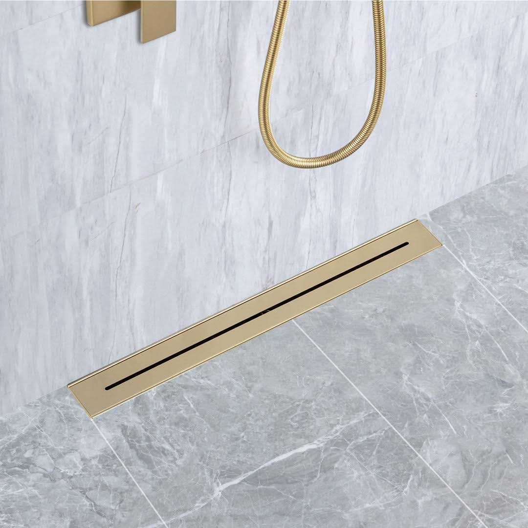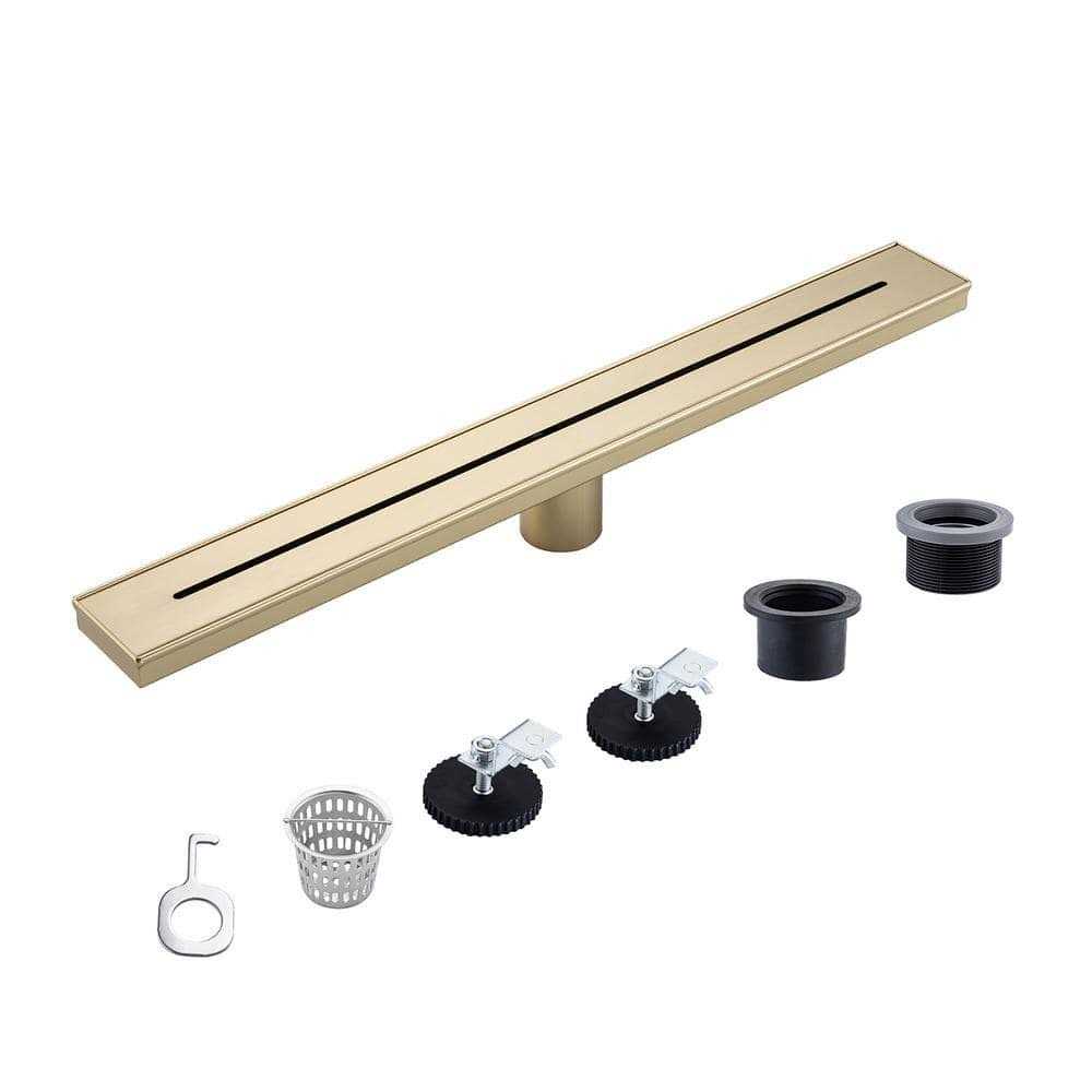 Rainlex 24 in. Stainless Steel Linear Shower Drain with Square Pattern Drain Cover in Brushed Gold