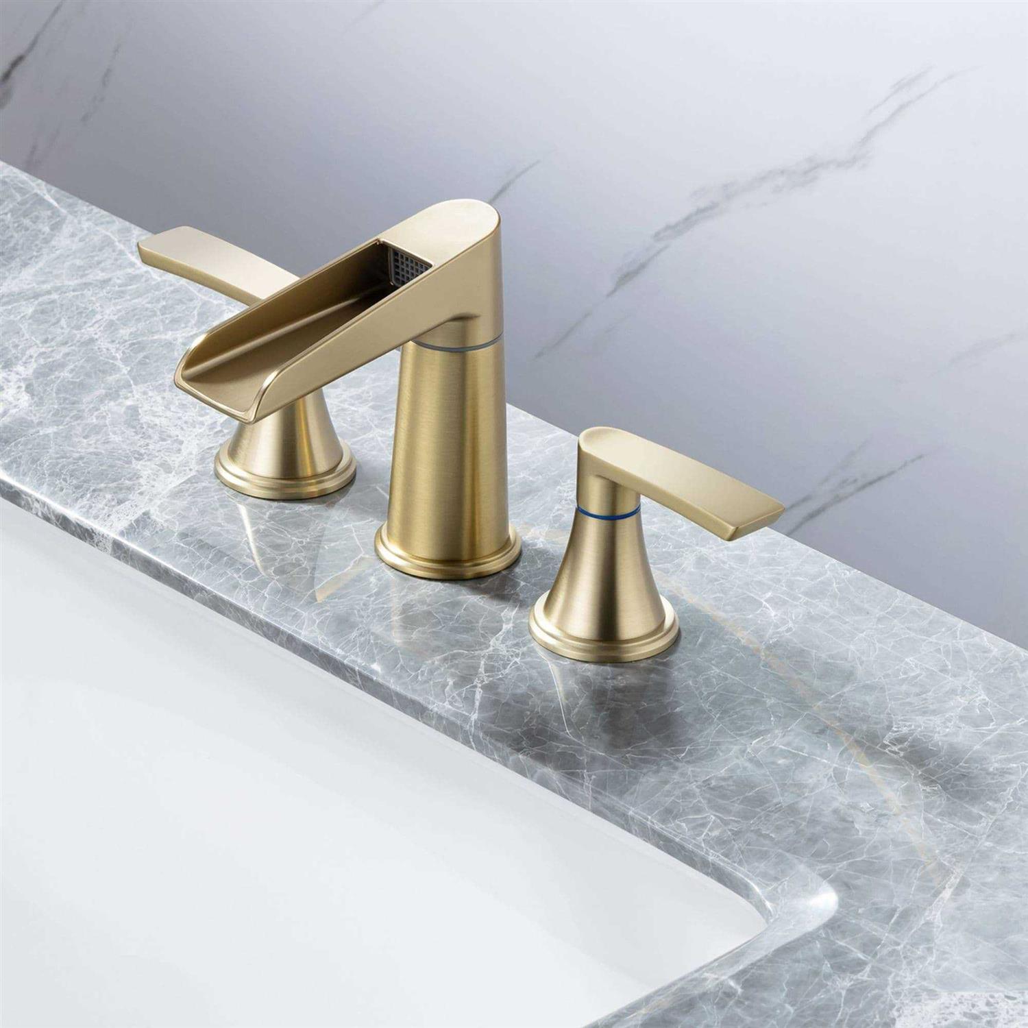 The Rainlex 2-Handle bathroom faucet is elegant. The waterfall rotatable spout allows for plenty of clearance for washing hands or delicate. A matched ABS pop-up drain and water supply lines are included. This faucet has a flow rate of 1.2 GPM @ 60 PSI and is 100% pressure system tested. A drip-free ceramic cartridge ensures reliable quality. The two handles design is convenient for precisely controlling water temperature and flow. Features 1. The unique waterfall design provides an elegant washing experience. Matched color pop-up drain assembly is included. 3. 100% pressure-tested to ensure quality 4. Superior corrosion resistant 5. Faucet handles can be installed between 6″ to 16″ for a more customized widespread installation. 6. Water supply lines are included. 7. Quality ceramic disc valve ensures drip-free performance.