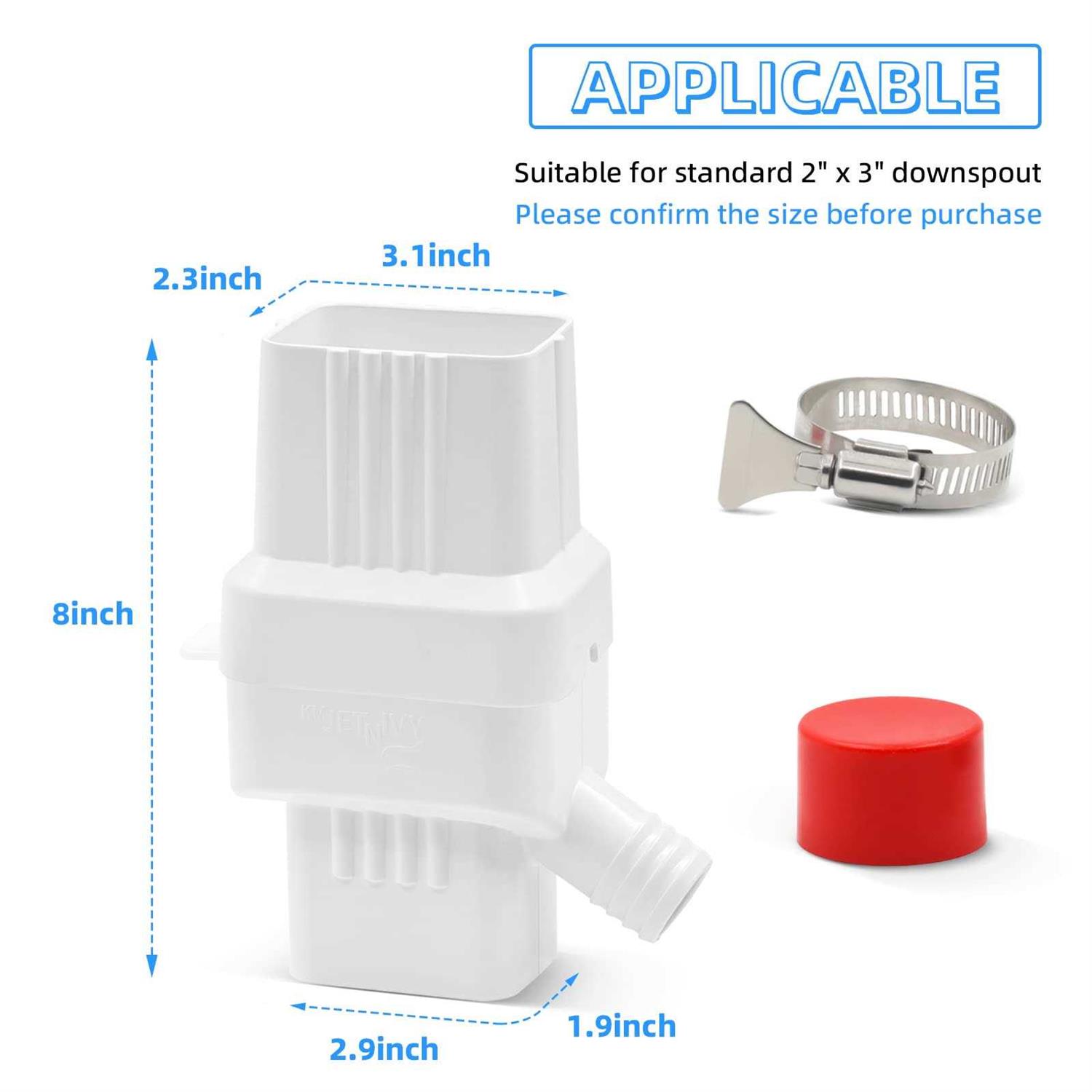 - The two-piece design of the downspout diverter can be used for a variety of rainwater barrels.