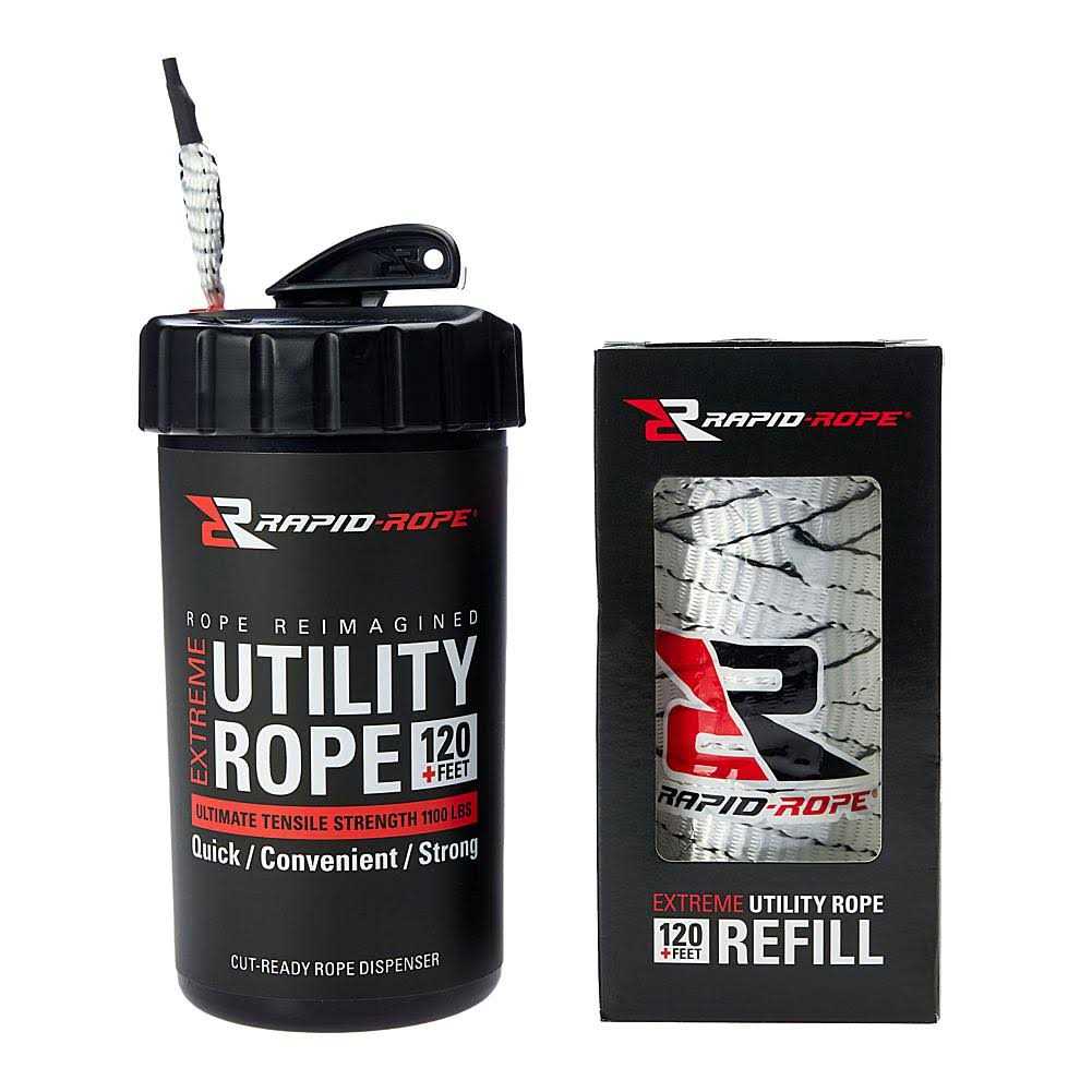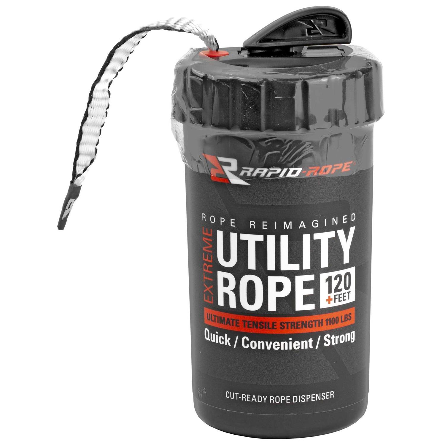 Rapid Rope is a uniquely designed multi-use rope dispenser system that can be used for almost every rope application. The 120 feet of rope comes in a durable, convenient canister that makes it easy to pull out and get the desired length. The canister also makes storage simple and compact. The cut insert on the lid makes cutting the rope simple and quick. Perfect for UTV, ATV, and motorcycle use. Shatterproof canister that consists of 120′ of extreme, multi-use utility rope. The rope is approx. 8mm wide and 1.5mm thick and is rated at 1100 lbs. Canister measures 6.5”x3” making it easy to pack on your UTV, ATV, or motorcycle. Cut insert on the canister lid makes pulling and cutting the right length of rope easy.