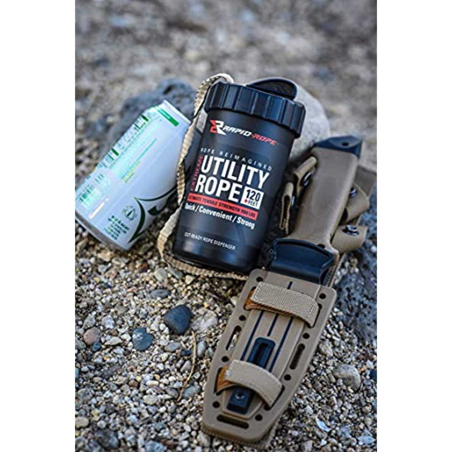- Shatterproof canister that consists of 120 of extreme, multi-use utility rope.