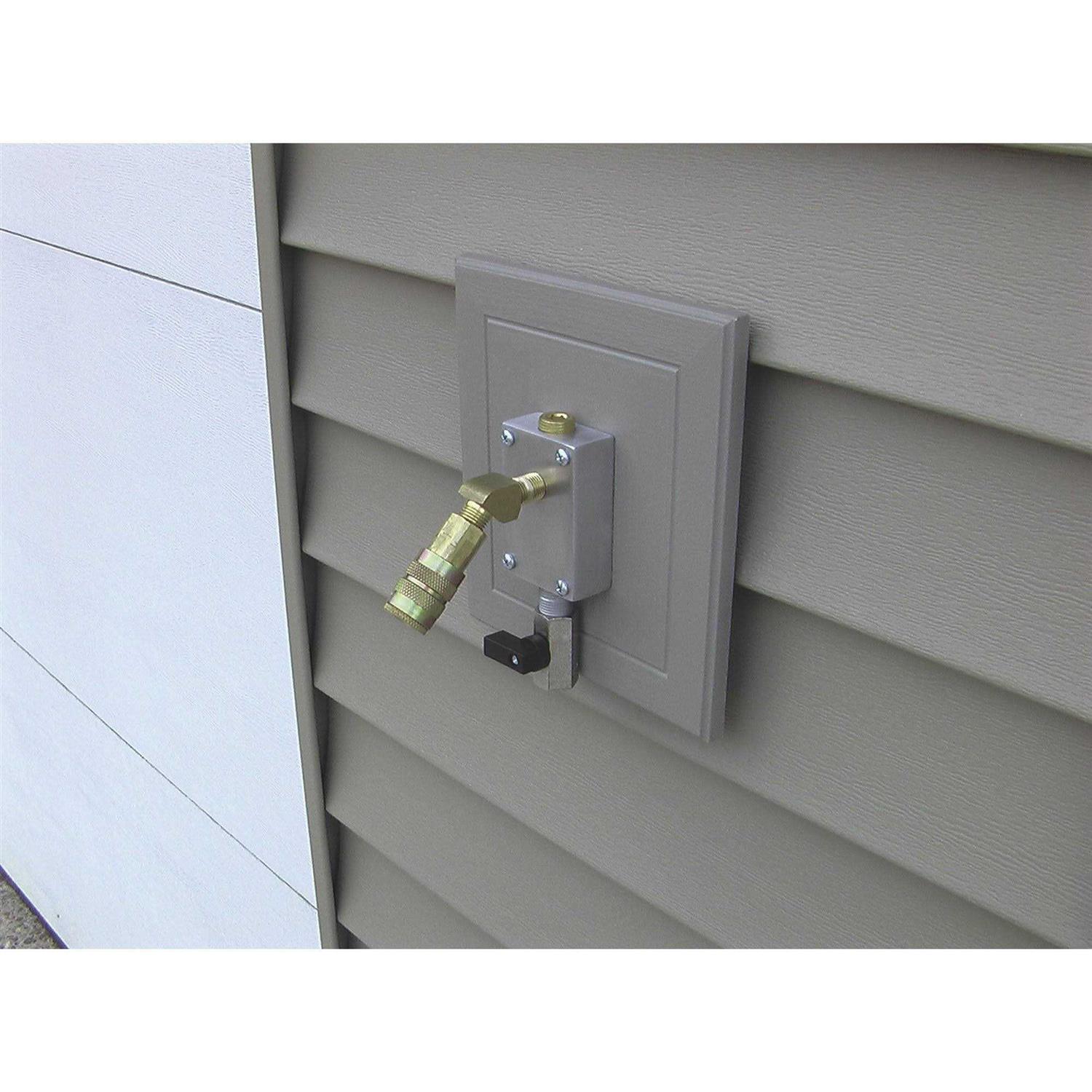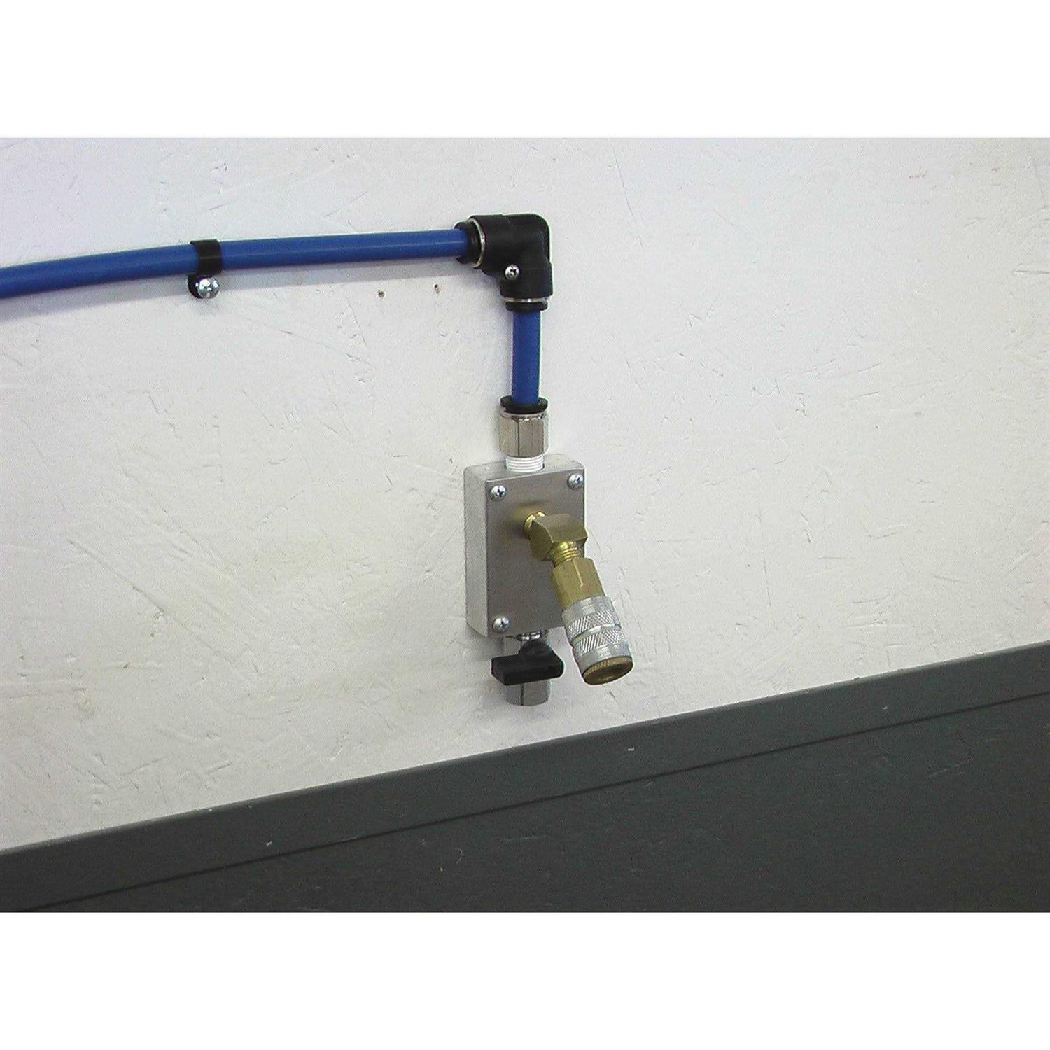 Compressed air outlet can be used for in wall surface mount or ceiling mount applications. Mount in any location you use compressed air. Comes with water vapor drain.Add a RapidAir tee fitting to adapt additional outlets to your system or master kit.Ported in 1/4 npt and 3/8 npt.