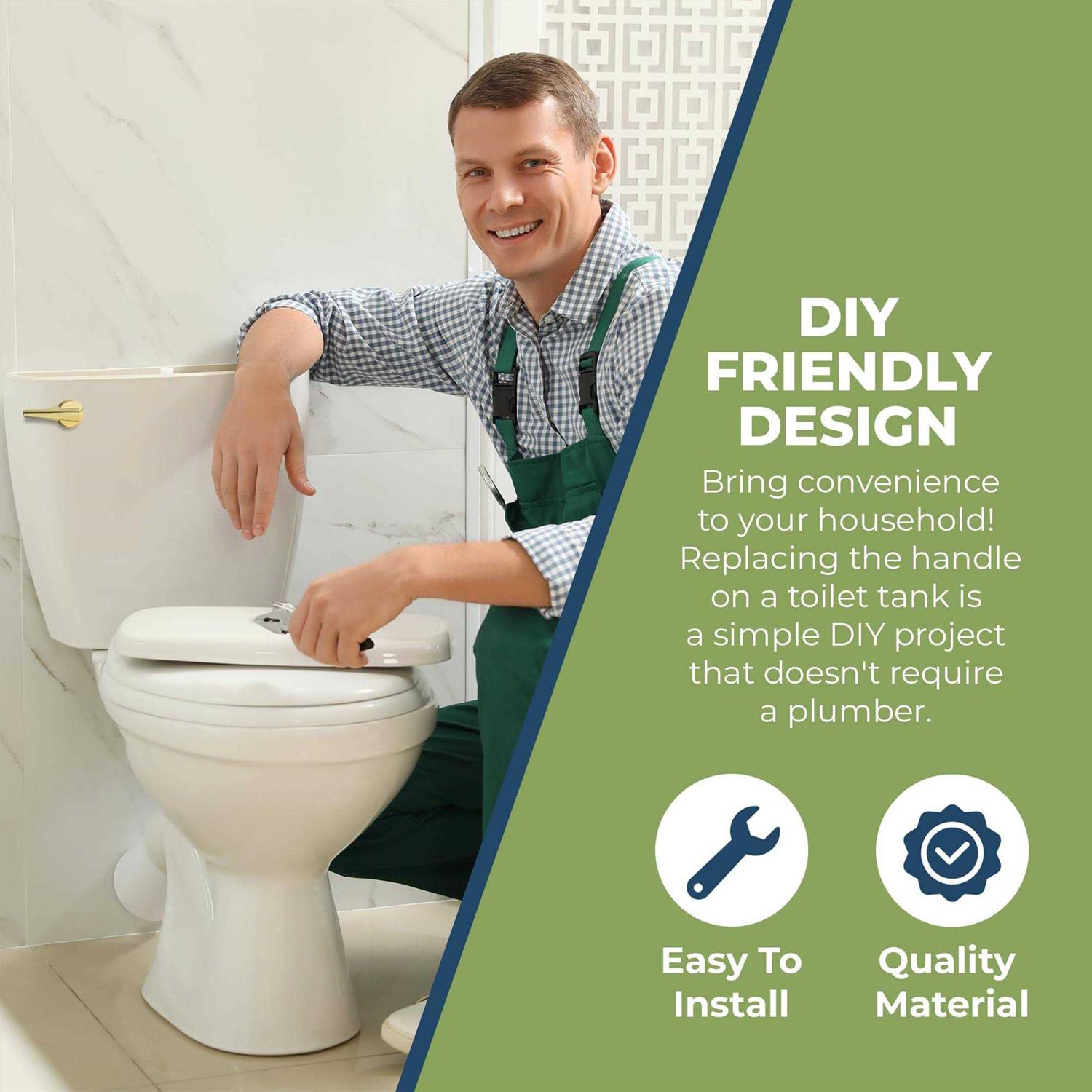 Toilet Tank Handle: A malfunctioning toilet handle is a common plumbing issue that is quite frustrating to deal with! But you probably don’t need a plumber to fix this; our universal toilet handle by RAVINE, made of brass material, is a long-lasting replacement for broken or worn-out handles or levers on any standard toilet tank.. No More Rust/Corrosion: Our toilet levers are made of brass, and when given a beautiful finish, they not only seem more elegant but also survive for years. This quality toilet handles replacement is ideal for your lavatory since the built-in brass arm is not wont break and can withstand water, mildew, and harsh weather.. Fits Most Toilet Tanks: This toilet flush handle is designed to fit most standard toilet tanks thanks to its universal size flush arm length with multiple holes. Upgrade Your Toilet: You can now say goodbye to those sticky handles, rusty trip levers, outdated bathroom designs, and broken levers. Its about the little changes that make a big difference! This front-mount universal toilet handle replacement has a polished beautiful finish that gives any bathroom a sleek, modern touch.. User-Friendly Design: Bring convenience to your household! Replacing the handle on a toilet tank is a simple DIY project that doesn’t require a plumber. The toilet handles replacement front mount eliminates the need for unnecessary power to flush, making it suitable for users of all ages, from infants to the elderly..,,RAVINE