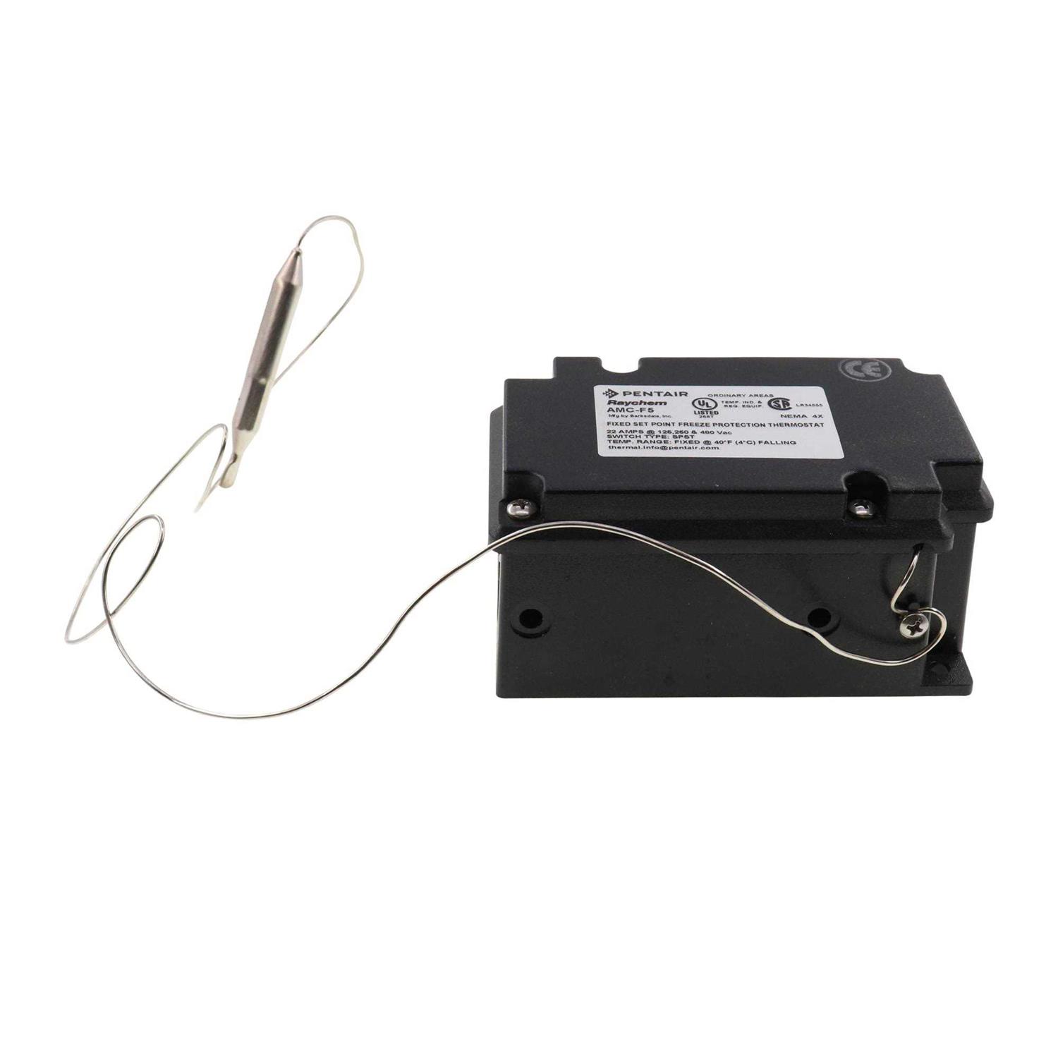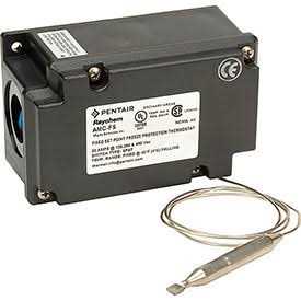 Pentair Thermostat is designed to control electric heat tracing systems used for pipe freeze protection in non hazardous locations. It features thermoplastic enclosure and tin plated copper sensor. Thermostat is voltage rated at 125/250/480-Volts and current rated at 22-Amps. Thermostat has fixed set point of 40 deg F and can be used in ambient sensing mode or line-sensing mode. It is suitable for building and construction applications. Thermostat is UL listed and CSA certified.