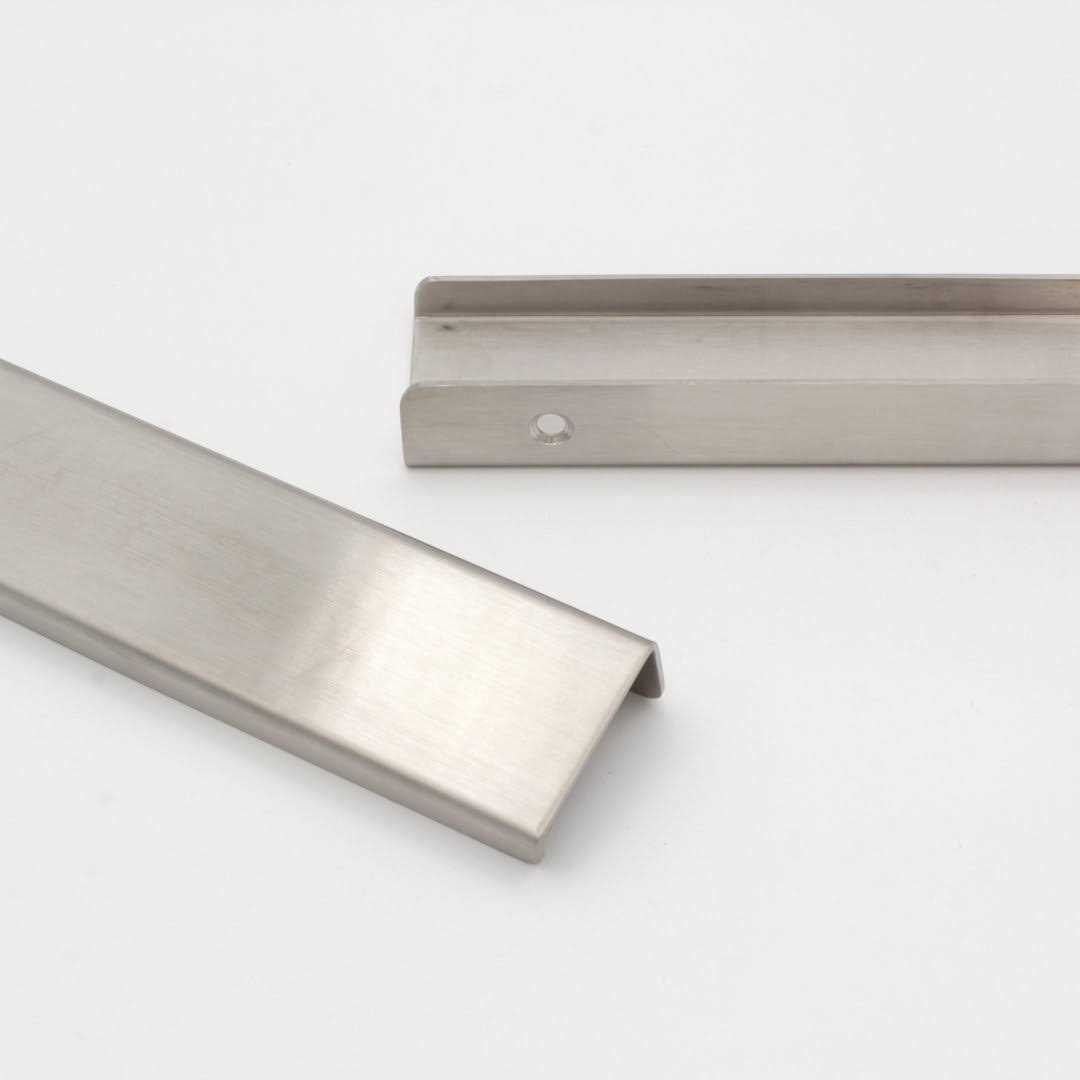 RCH Supply Company Showcase your personal style in a simple yet impactful way while adding functionality to the furniture around your home with our line of SS161 Stainless Steel finger edge pulls. Inspired by minimalist and industrial spaces, this style features a barely-there design with clean lines that convey both luxury and refinement. While ideal for modern aesthetics, these finger pulls are so universally appealing that they seamlessly accentuate furniture in mid century, contemporary, minimalist, industrial, urban, and scandinavian interiors. Since our handles are made from high quality 201 Stainless Steel, they’re rust resistant and fingerprint proof, making them perfect for high-traffic touchpoints indoors and outdoors. The versatility of these tab pulls cannot be overstated – install them horizontally or vertically on cabinets and drawers in kitchens, bathrooms, and on furniture throughout your home. Plus, since they’re available in 4 sizes and some of the most popular hardware finishes, you can coordinate your hardware to achieve a cohesive look in any space at a great price. The larger sizes are great for adding a modern touch to appliances, built-in cabinetry, or fitted furniture, while the smaller sizes can be used to [replace old handles on/transform] kitchen cabinets, bathroom drawers, bedside tables, dressers, vanity drawers, entertainment centers, or bedroom closets. Matching installation hardware is included with these rear-mounting edge pulls, so you can easily add sophisticated functionality to any space with just a few screw turns.