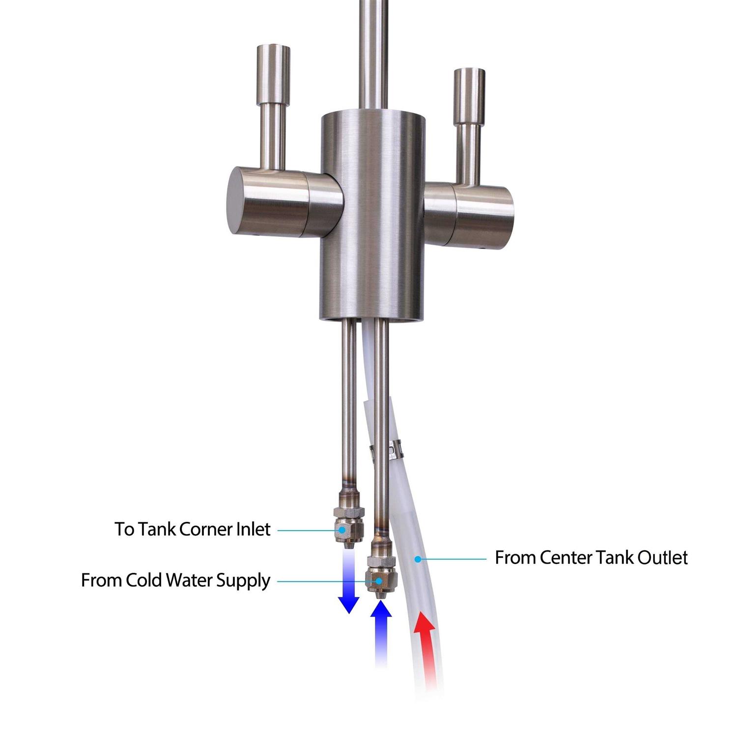 For years the only solutions to hot water were stove-top or microwave heating. Now the Ready Hot Faucets can deliver instant 190 degree water at your fingertips when used in conjunction with the Ready Hot hot water tank. The near-boiling water makes beverage and instant foods in seconds including tea coffee cocoa soups noodles pasta and vegetables. In addition it may be used for many other household tasks like warming baby food bottles or cleaning pots pans. Also works with many other hot water tank brands.