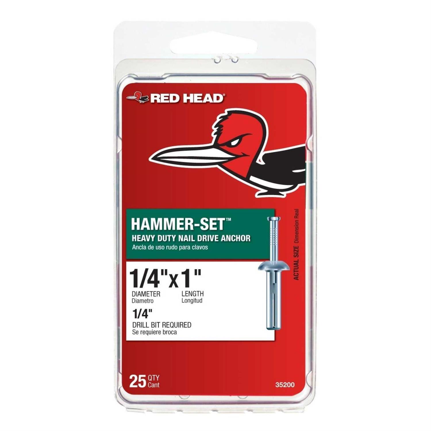 Red Head Hammer Anchor, 0.25″ x 1″ – 25 count