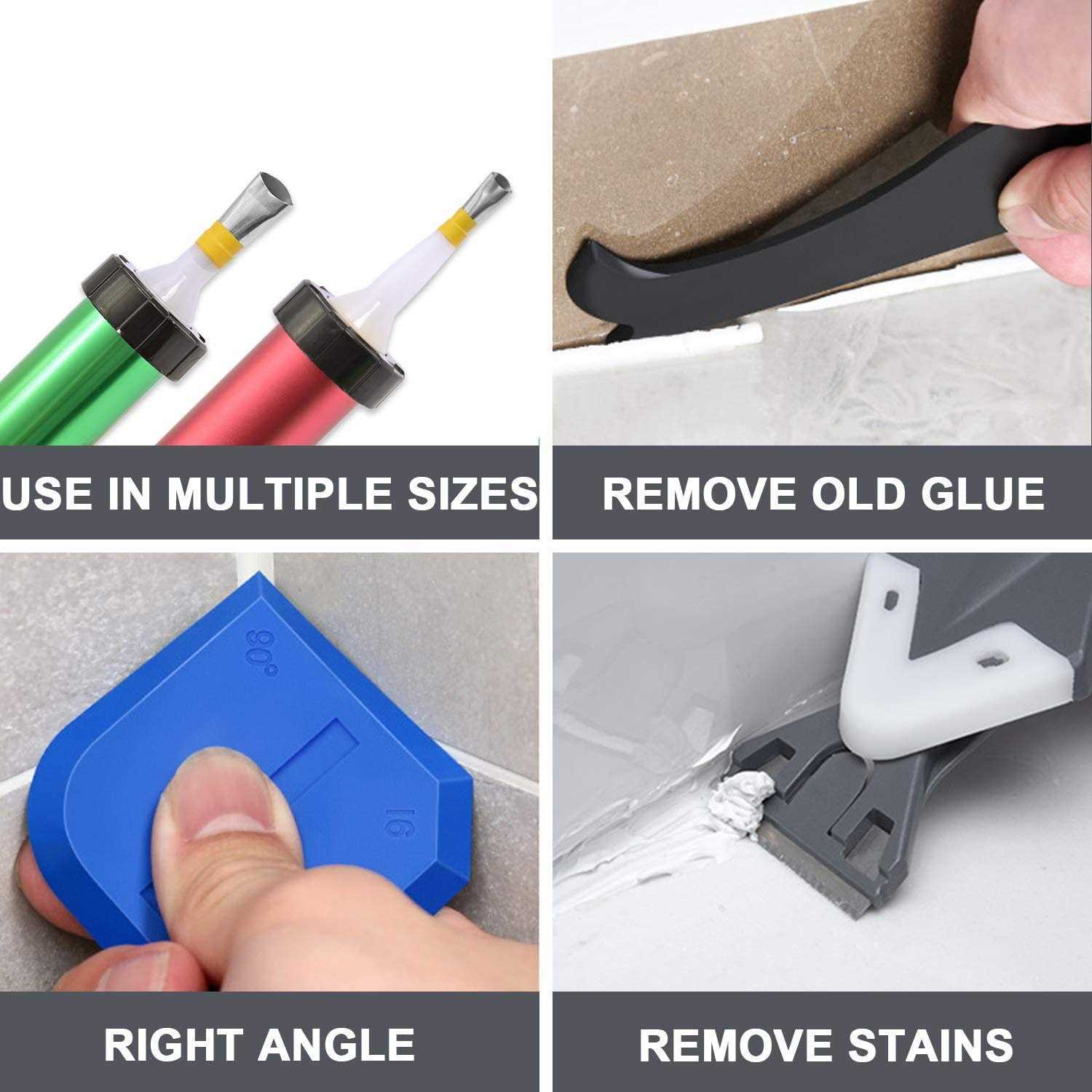 Features: (Caulking Nozzle Applicator Finishing Tool) It comes in different sizes(5, 6, 7, 9, 10, 12, 13, 16, 20, 25, 26, 28, 30, 35mm) that can easily satisfy your caulking need. Fill in and seal gaps easily. (3 In 1 Caulking Tool+6 Pieces Sealant Finishing Tool) This set of upgraded tools can help you repair the gap and clean the residual glue, Improve the Agglutinating Quality and the Aesthetic Sense of Surface. (Caulking Scraper) The caulking scraper can remove the residual glue and is an ideal auxiliary tool for sealing operation.Packages: 14* Stainless Steel Caulking Finisher 1* 3-in-1 caulking tool 6* silicone pads 4* caulking scraper