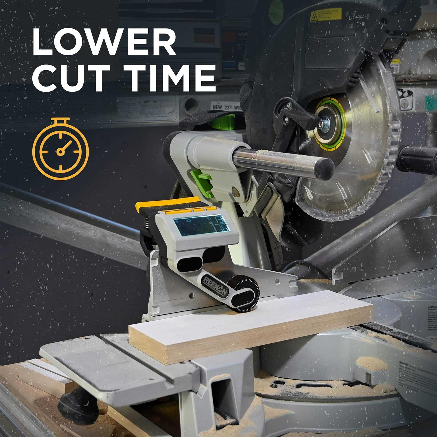While tape measures are a staple of any toolbox or carpenter’s belt, the time necessary to take a measurement and mark a material every time a cut needs to be made quickly adds up. The M1 Caliber Measuring Tool eliminates the need to measure and mark materials, significantly lowering the time to make cuts, increasing safety by keeping measuring related activities in a central location, and providing a hassle-free experience allowing professionals to measure and cut materials without stopping to mark them. The M1 Caliber is a digital measuring tool that works by sliding material underneath its wheel. The M1 Clamps directly to saw fences. The blade width is automatically compensated for and units can be displayed in both English and Metric units on a large, backlit, LCD display. It is powered by 2 AA batteries (not included). It can work on both the left side and right side of the saw fence and digitizes any measurements taken on your miter saw, chop saw, or band saw. An automatically adjusting spring loaded arm allows the M1 to work with a range of material thicknesses along with material types ranging from wood to composites to metals. View compatible models in product documents section.