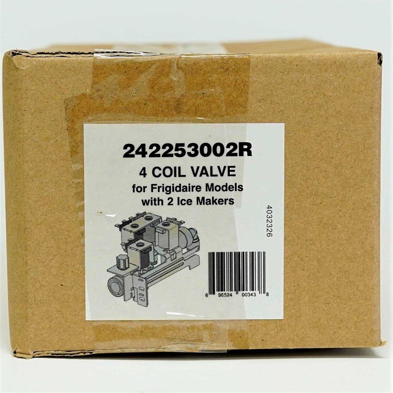 Four coil quad water inlet valve. One compression inlet. Five push on outlets 2 are connections 3 are 5/16 connections. Two coils are rated at 35w two coils are rated at 20w. All coils are 120v. Replaces numbers 242102201 2689640 ap5669874 and ps7321353. Designed to fit specific electrolux manufactured refrigerator models including crosley frigidaire gibson kelvinator.