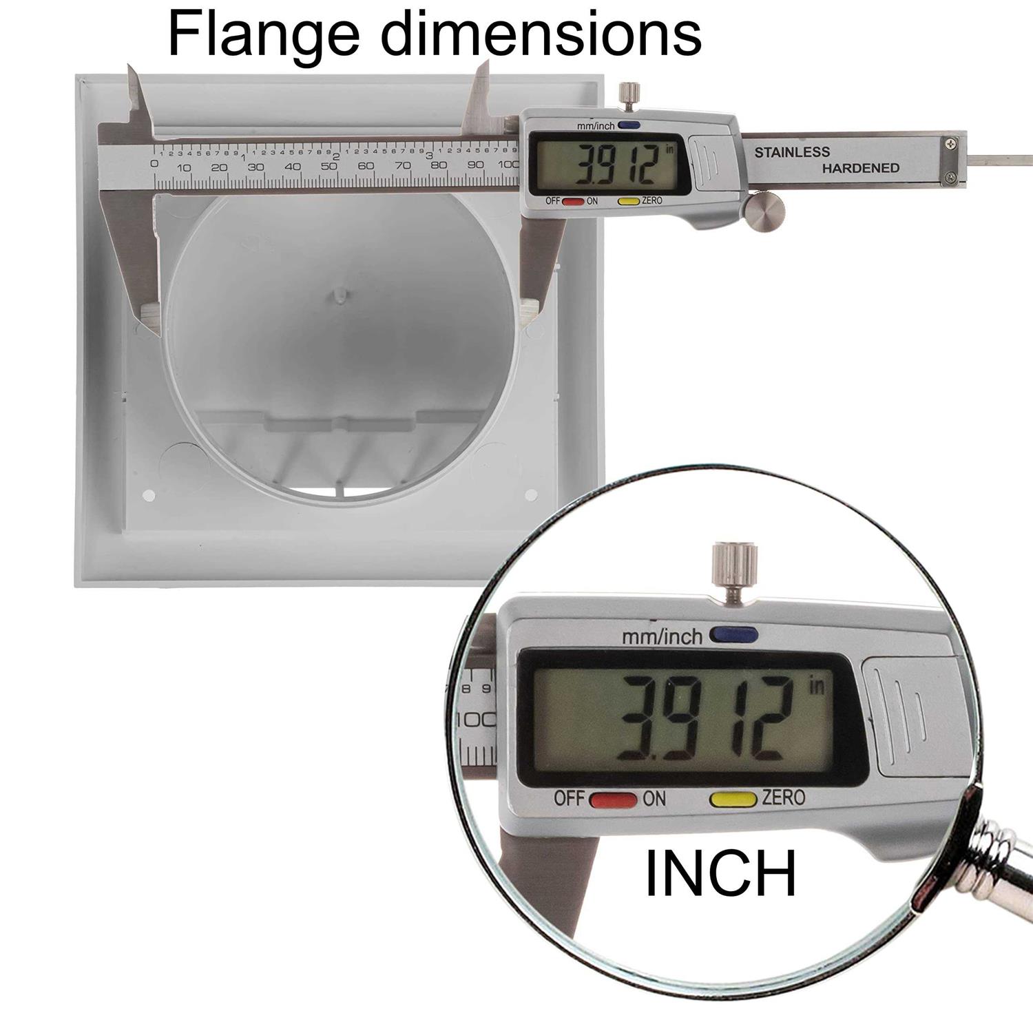 Usable indoors and outdoors. Easy to install fresh air exhaust vent cap – grille cover. Designed for maximum airflow. This product has a one directional flap. Paintable plastic components contain UV stabiliser to reduce fading due to exposure to sunlight. Helps keep wind, rain, snow, pests and birds from entering outdoor dryer vents. Fits a 4-inch diameter pipe/vent opening. The outside dimensions of the cap cover plate are 6 x 6 Made from durable, high quality and long lasting material.