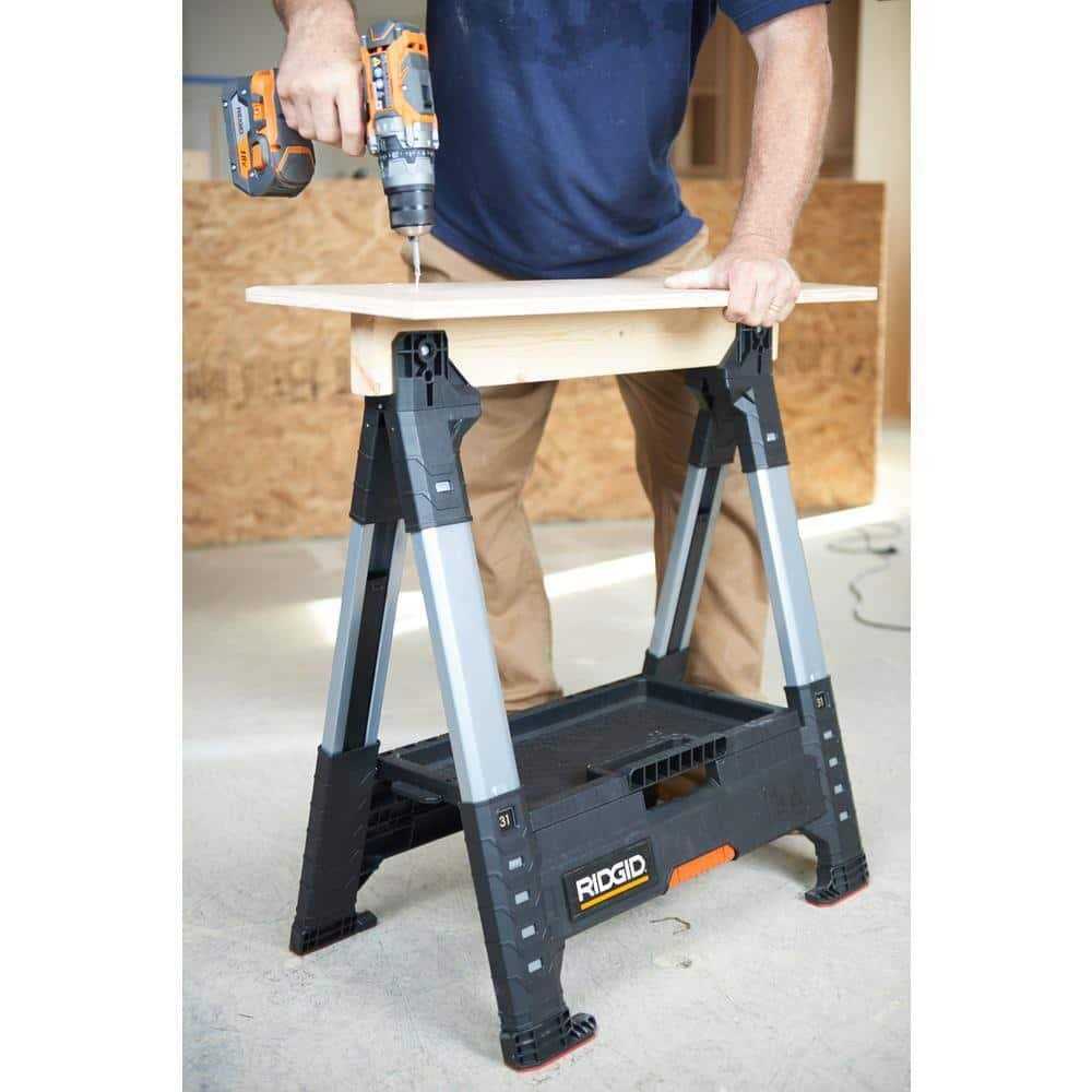 RIDGID 230710 32 in. Polypropylene Folding Sawhorse with Adjustable Metal Legs