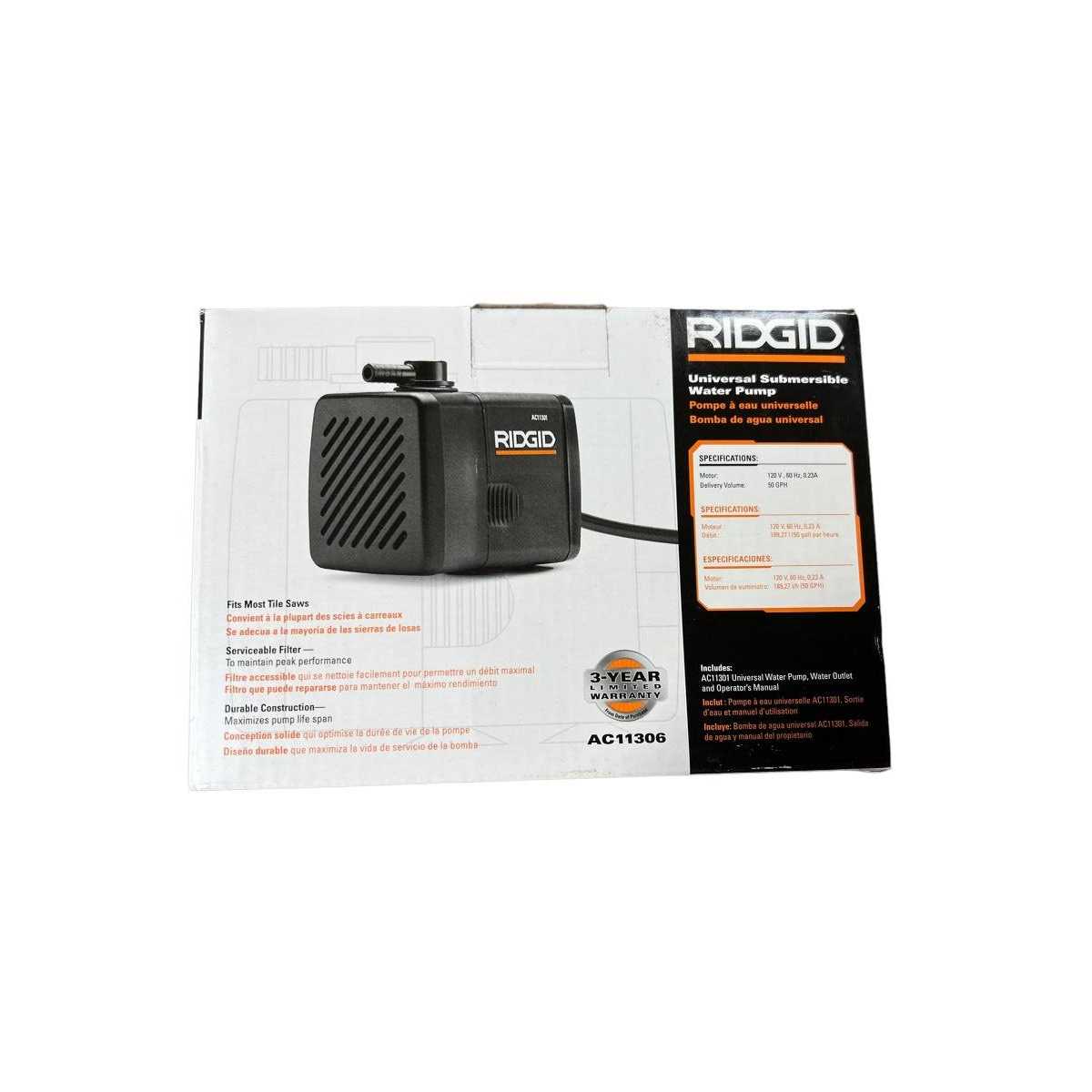 The RIDGID Replacement Submersible Water Pump for RIDGID Tile Saws fits RIDGID tile saws R4007, R4010 and R4090 and most other brands of tile saws. The pump features a maximum output of 50 GPH.