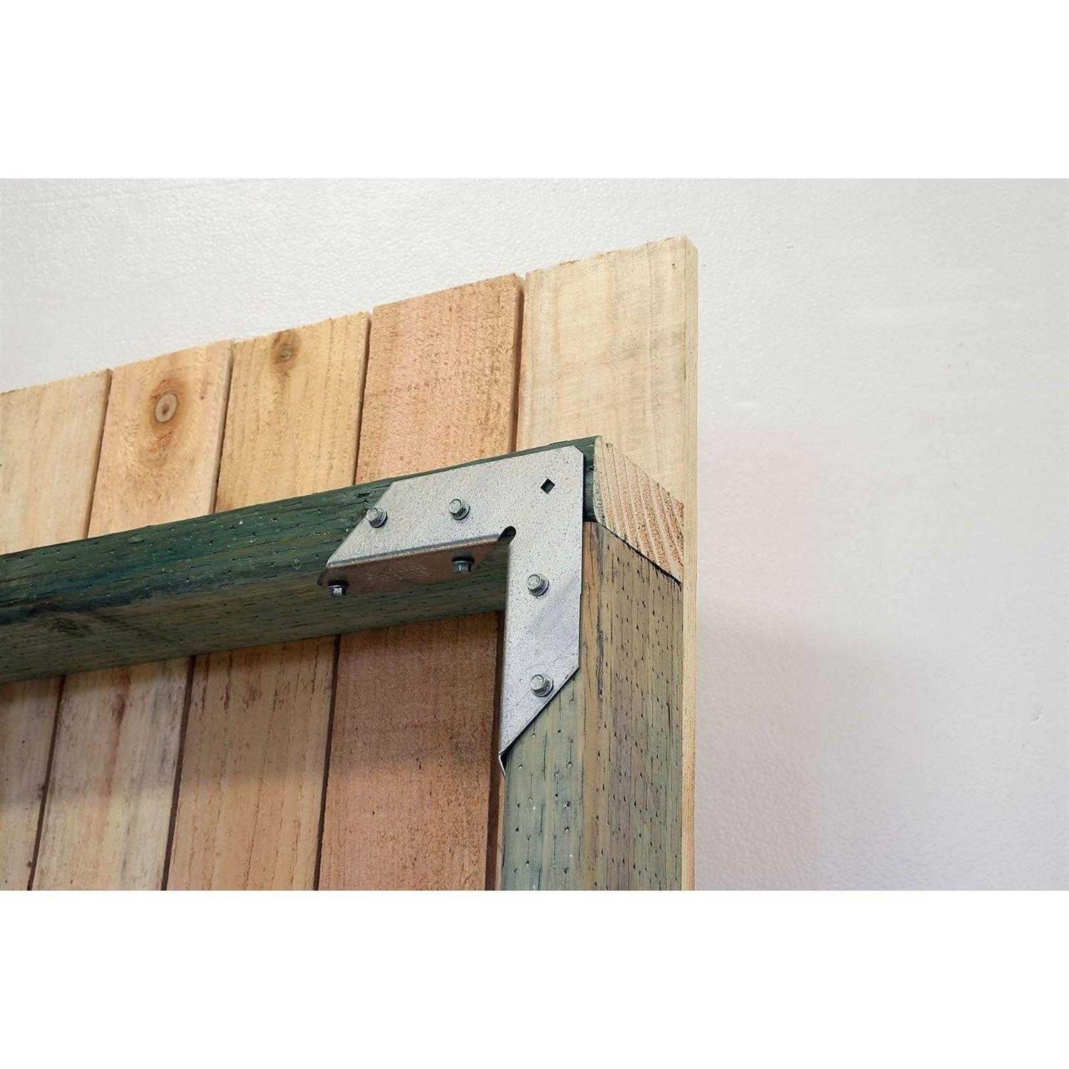 Wraps around the wood members from 2 directions, eliminating the need for angle bracing. Ideal for rectangular frame construction and wood projects with right angles. Connects two 2x members at a 90 degree angle. Galvanized steel. Some sizes are available in ZMAX coating. Material: galvanized steel, Finish: Z-max.