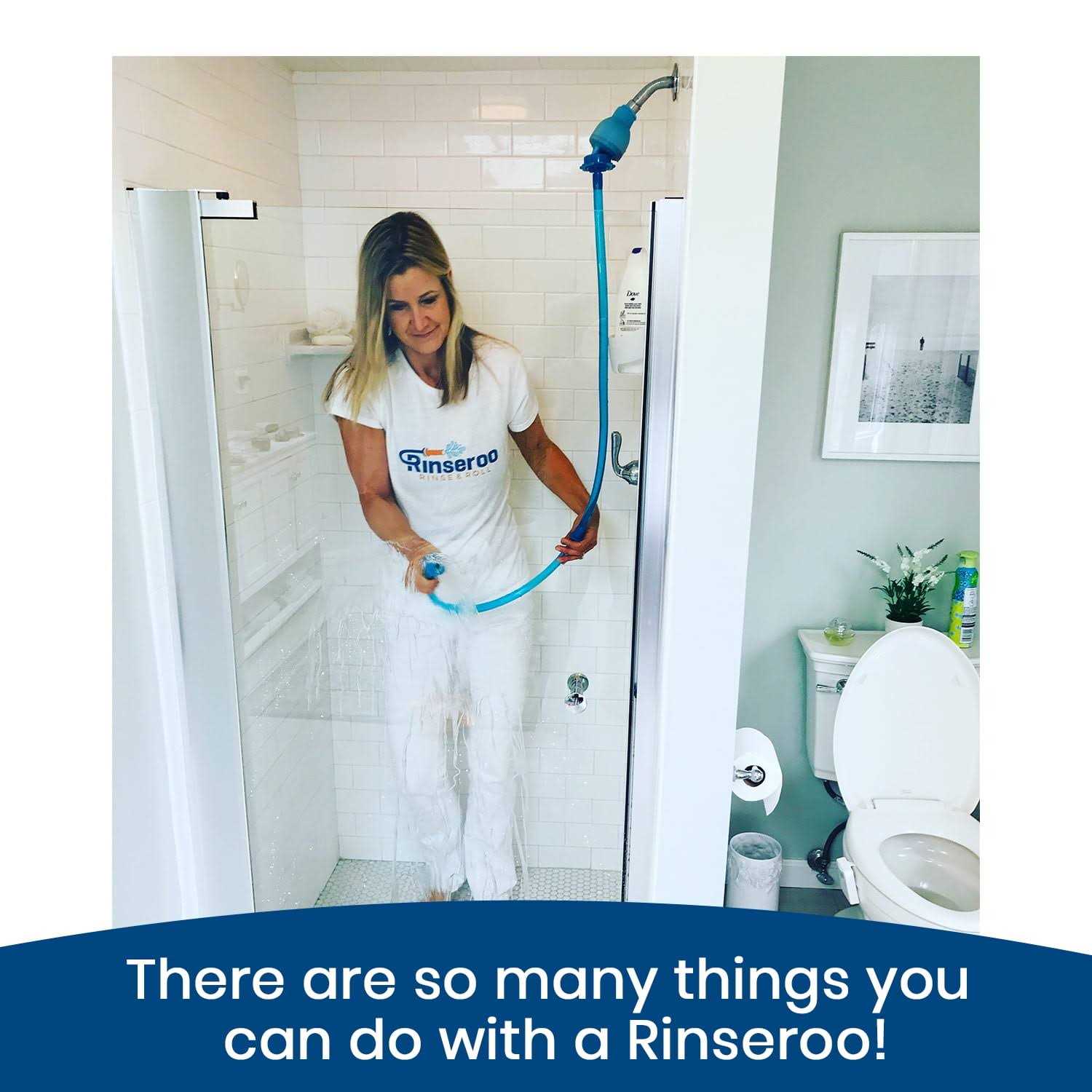 Attaches to sinks and showerheads up to 6 in diameter (Not for tubs) Connects in seconds with no installation Includes 5-foot flex hose and two rubber connectors (one spare) There are so many things that you can do with a Rinseroo. Turns any sink or shower into a convenient place to rinse, clean and bathe. Perfect for giving a furry best friend a bath, washing shower walls, bathing the elderly or injured, rinsing muddy boots in the laundry room, filling a portable washing machine or fish tank. International products have separate terms, are sold from abroad and may differ from local products, including fit, age ratings, and language of product, labeling or instructions. International products have separate terms, are sold from abroad and may differ from local products, including fit, age ratings, and language of product, labeling or instructions.