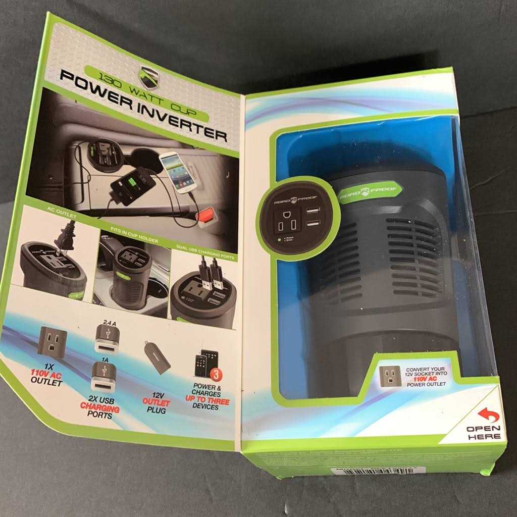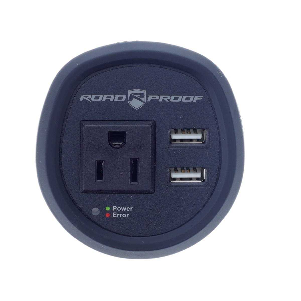 - Converts vehicle DC power into usable AC and USB power