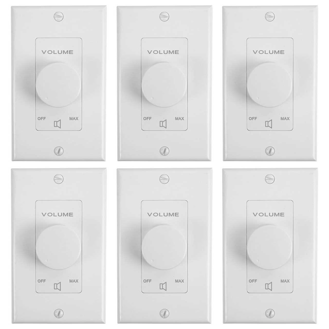 6) Rockville VOL70100 White 100 Watt 70V Wall Volume Control Zone Controllers