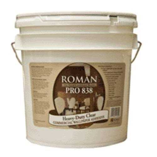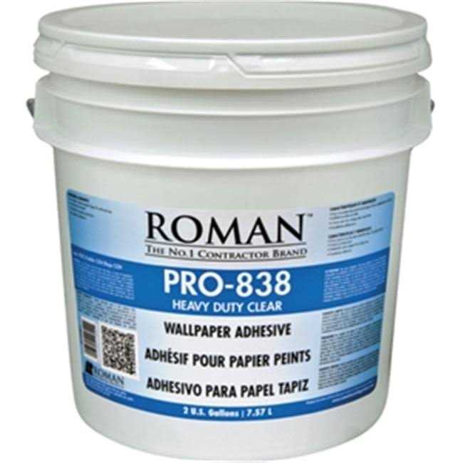 - This item is Roman 11302 Pro 838 Heavy Duty Wallcovering Adhesive, Clear, 2 Gallon