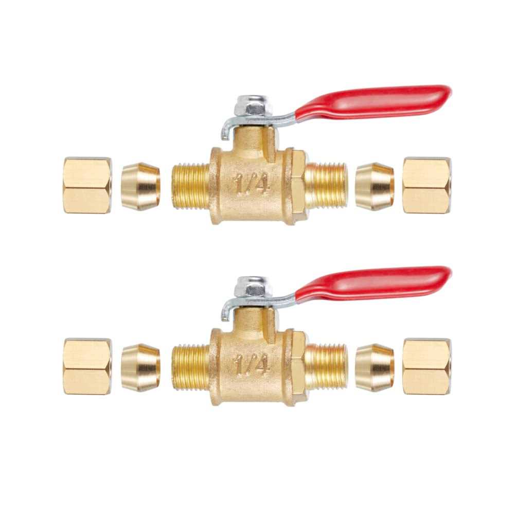 Roulipouli Brass Ball Valve Shut Off Switch, Tubing Fitting Straight Coupling Adapter 2pcs (1/4″ Compression x 1/4″ Compression)
