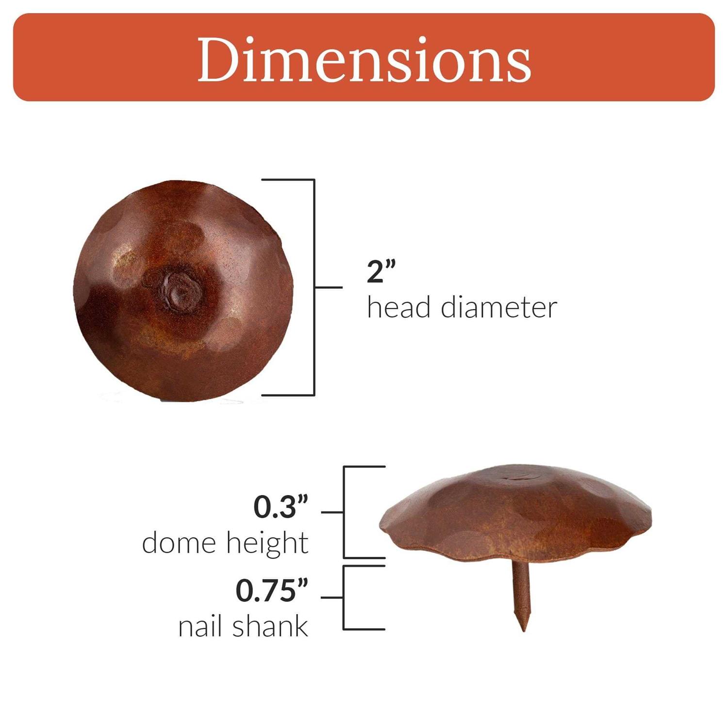 These 2 inch Round Iron Decorative Nail Clavos, a top-quality, hand forged iron product, will complement any traditional project in your home or business. Install by simply drilling a small pilot hole and tap in with a rubber mallet. Available in a variety of finishes and quantities.