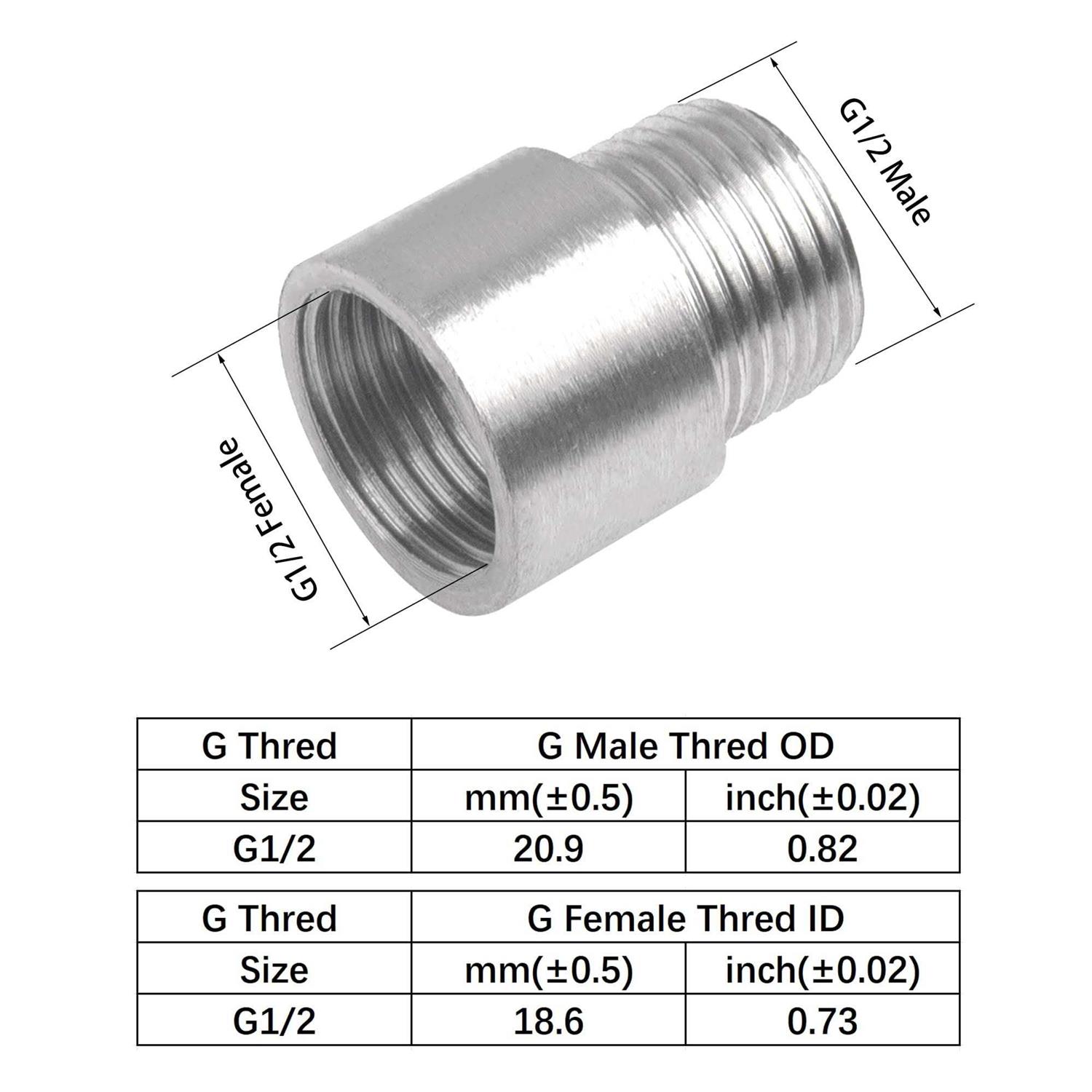 MATERIAL: Made of thick 304 stainless steel, strong and durable, high strength, not easy to rust, anti-moisture, anti-oxiclation, corrosion resistant.. SIZE: Male Thread Size: G1/2(Approx OD 20.9mm/0.823″); Female Thread Size: G1/2(Approx ID 18.6mm/0.732″), length 30mm/1.18inCan be extended after installation 17mm/0.67in).. EFFECT: Connecting and extending the shower arm, the perfect adjustment of the shower, It is recommended to use a pipe wrench for installation. If there is no pipe wrench, the internal and external threads can be tightened at the same time to achieve the best results.. The pipe fittings can also be used for industrial pipelines and pneumatic systems, fuel equipment, gardens, swimming pool water pipes, faucet, etc..,,Rrina