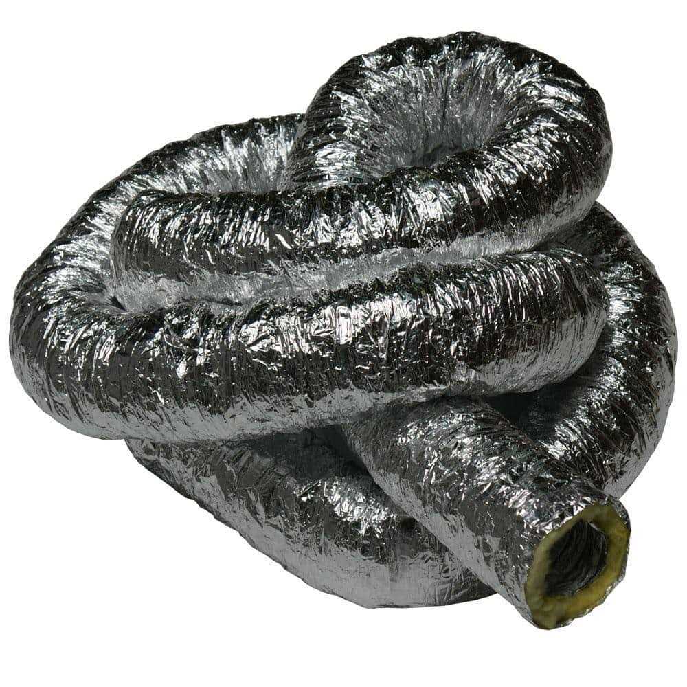 The HVAC Insulated-Flex hose is a superb choice for HVAC air duct use. These flexible ducts for air conditioning applications are double-ply insulated flexible hoses that are made of aluminum foil and PET film layers. Each HVAC flexible duct is insulated with glass wool material. It is a competitive and cost-effective HVAC ducting option. The shiny silver insulation material makes this product look good in any setting. The insulated nature of this portable air conditioner hose allows it to operate in both high and low temperatures. The double-ply insulated material of this HVAC flex ductwork allows it to function well in temperature ranges between 20° F and 160° F. Whether your application involves the transfer of cold air or hot air, this HVAC duct will easily maintain its structural integrity. This portable air conditioner hose that can be easily compressed for transportation purposes which is very useful if your applications are constantly on the move. in. HVAC Insulated-Flex” comes in the following internal diameter (ID) options: 4 in., 6 in., 8 in., 10 in., and 12 in. No matter what size you get them in, all of the HVAC flexible ducts come in a shiny, metallic silver color. These ducts are meant for residential and industrial air movement applications. It adaptable flex hose that can function well in a variety of venues. Use this HVAC ducting for applications such as AC ventilation, cold air supply, confined space ventilation, utility blowers, dehumidification, and more.