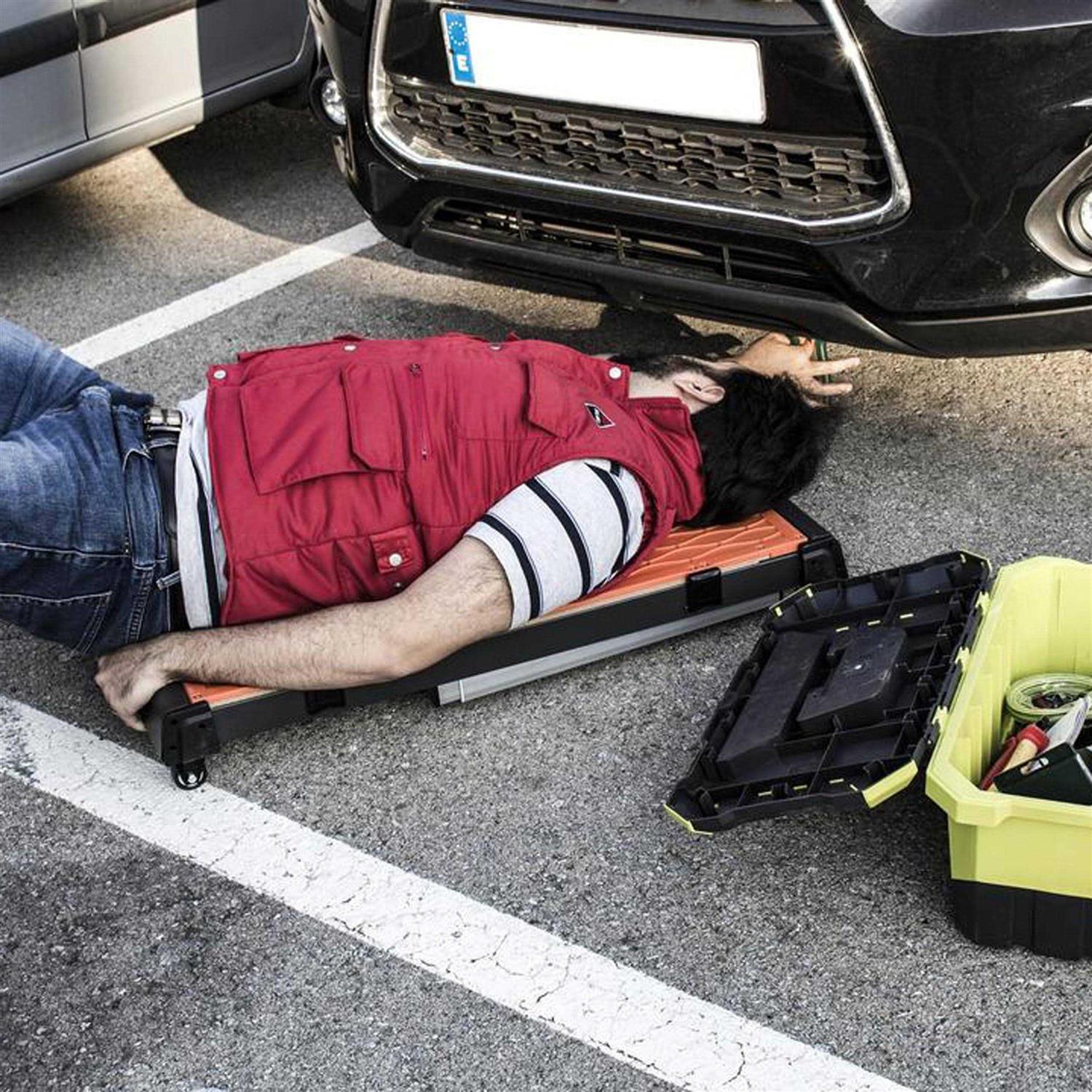 The foldable work table has 4 outstanding functions: Work bench scaffolding wheelbarrow and mechanical stretcher. Being foldable and light with its only 14.2 kg it is very easy to transport and store. It consists of an easily interchangeable double-sided table. On the one side the board is made of MDF wood necessary for the function of workbench which also has a protractor of angles a ruler for measurements and a hole to make holes of up to 25 mm in diameter without drilling the board itself. The other side of the board is made of polypropylene plastic ideal for the functions of wheelbarrow scaffolding or trolley. The highly stable worktable thanks to its combined structure of sheet steel and aluminium gives to the user lightness and robustness at the same time. The structure of the folding legs incorporates a step to climb and lower in scaffolding mode. The structure of the table has reinforcement of stainless steel to perform work and avoid damage to the wooden board. The work area is 80 x 47 cm and can be adjusted in two possible heights: 55 and 80 cm. In the wheelbarrow and trolley modes the foldable work table is very easy to manoeuver thanks to its 4 wheels two of which are directional. The maximum load capacity of the foldable work table is 150 kg in wheelbarrow/ trolley mode and 200 kg in work bench / scaffolding mode.