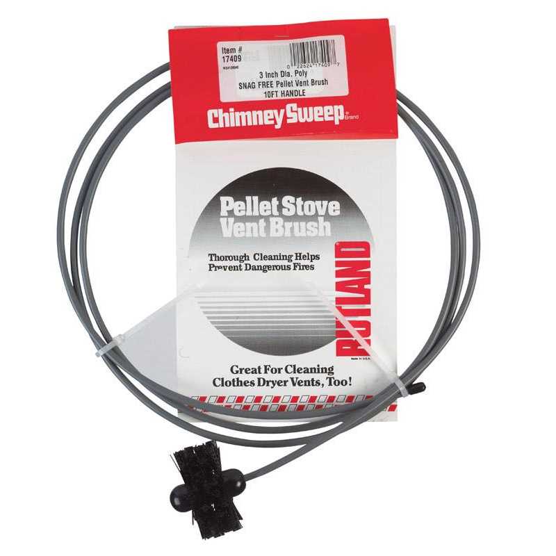 Designed specifically to clean pellet stove and dryer vents, this Rutland 3 Inch Pellet Stove and Dryer Vent Brush features a flexible ten-foot handle that allows it to easily navigate sharp corners and avoid getting stuck in pipe elbows. The brush’s soft poly bristles and relatively small diameter also ensure a thorough, yet gentle cleaning. Effectively cleans pellet stoves and dryer vents. Flexible 10′ handle allows you to navigate sharp turns without getting caught in elbows. 3″ brush head with .020″ poly filament.