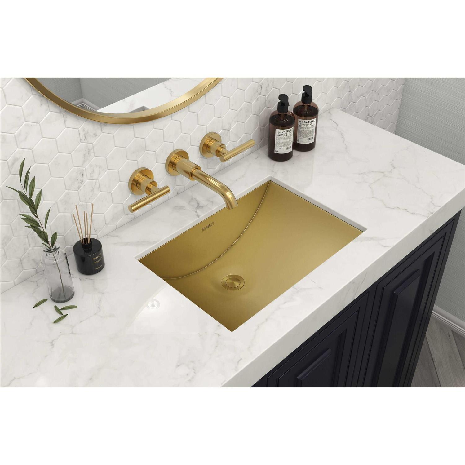 Ruvati RVH6107GG 16 x 11 inch Brushed Gold Polished Brass Undermount Rectangular Bathroom Sink