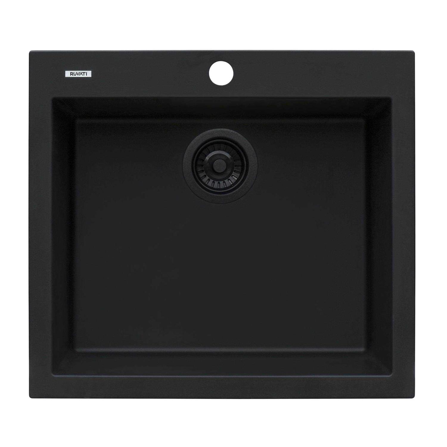 Ruvati 22 x 20 inch epiGranite Drop-in Topmount Granite Composite Single Bowl Kitchen Sink RVG1022BK