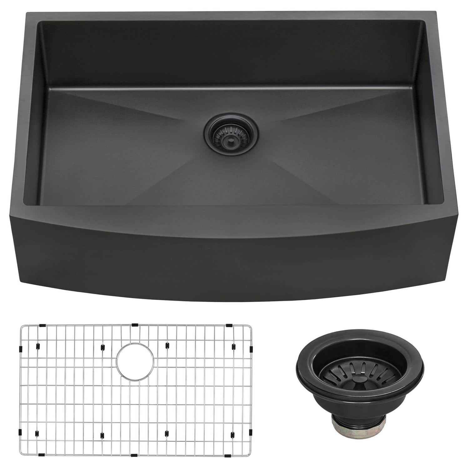 Ruvati 33″ Apron-Front Farmhouse Kitchen Sink Stainless Steel Single Bowl, Gunmetal Matte Black