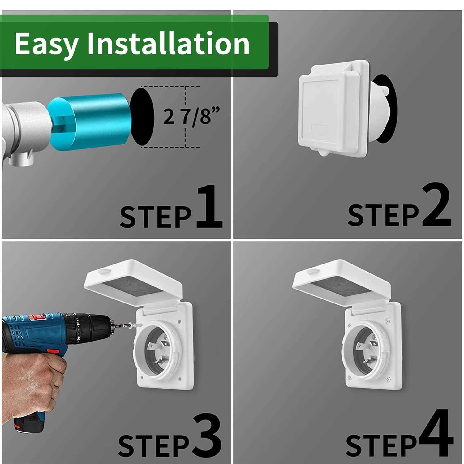 RVGUARD 125V 30 Amp RV Power Inlet, White, Twist Locking, Power Plug w/ 3 Stainless Steel Pins & Screws