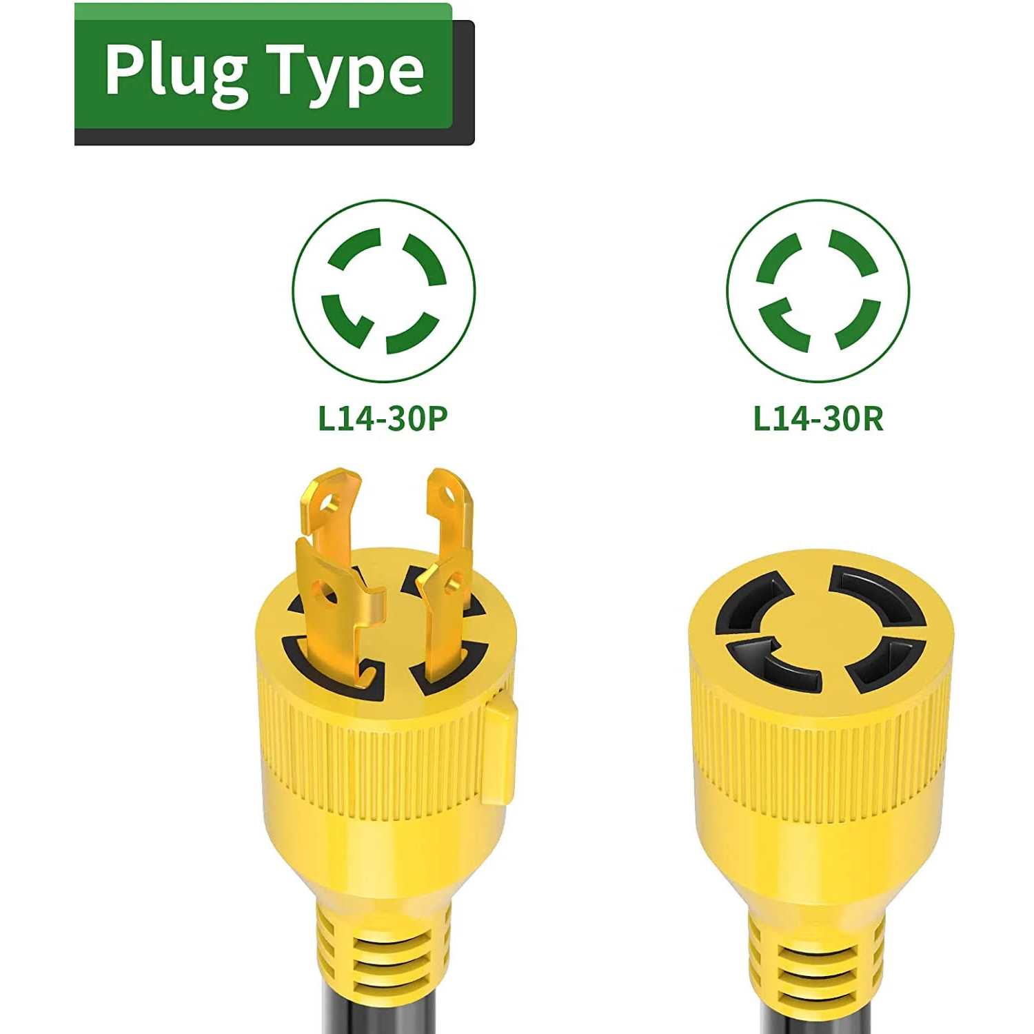 • Quality Cable – NEMA L14-30P to L14-30R SJTW 10 Gauge 4 Prong 10FT generator extension cord 125/250V.