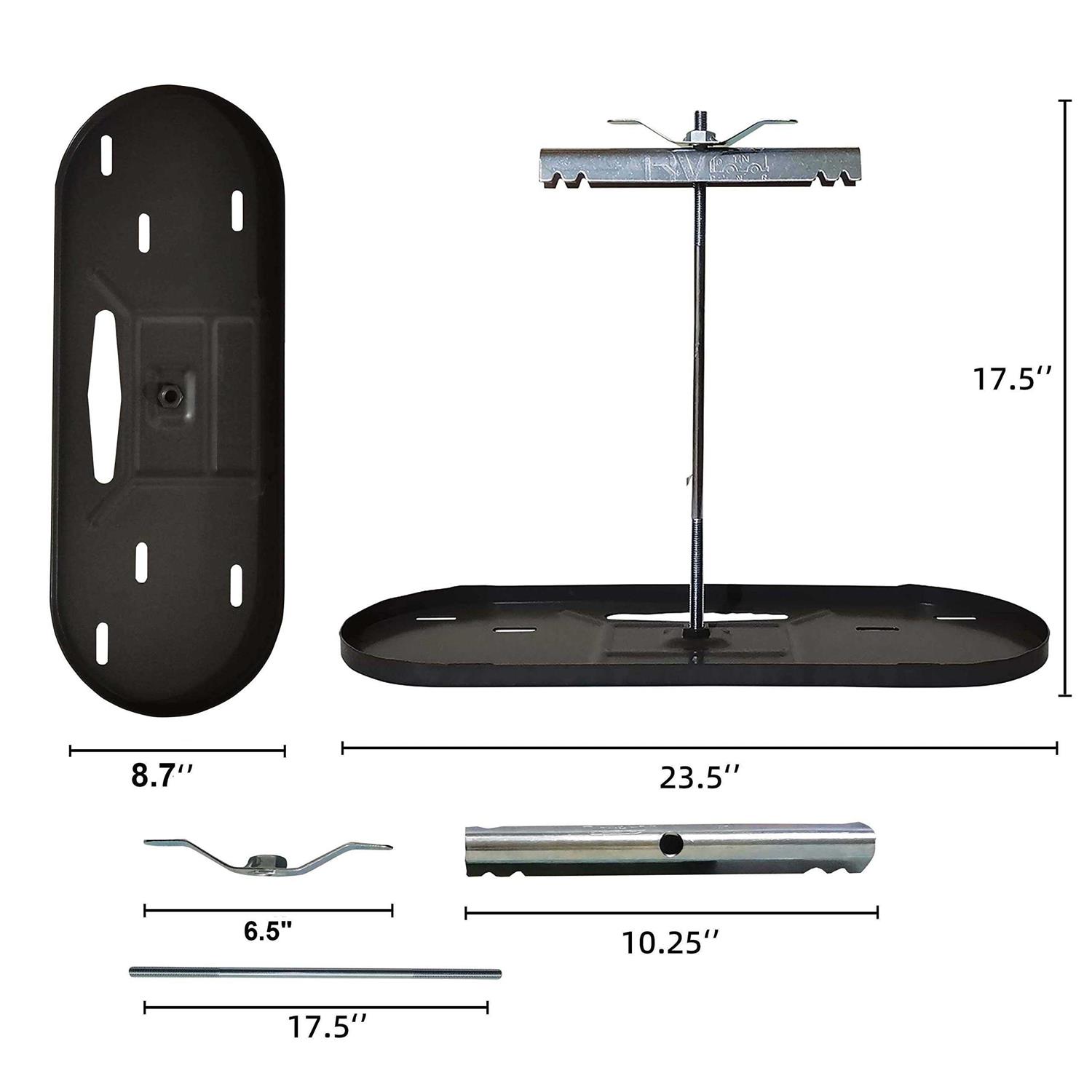 - This LP tank mounting bracket features overall dimensions measuring 23 5/8″ wide by 8 1/2″ deep, with the rod measuring 17″ max on the 20-pound kit.
