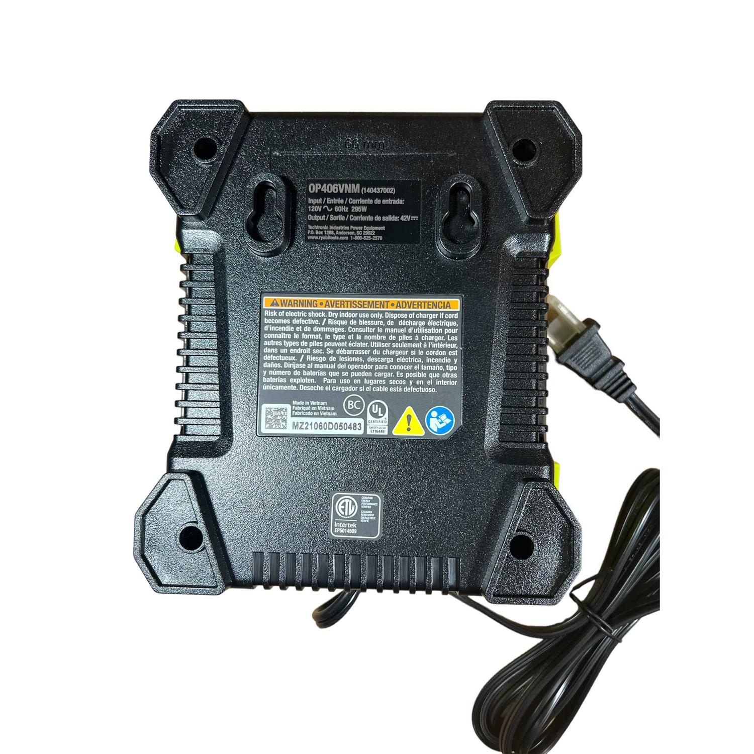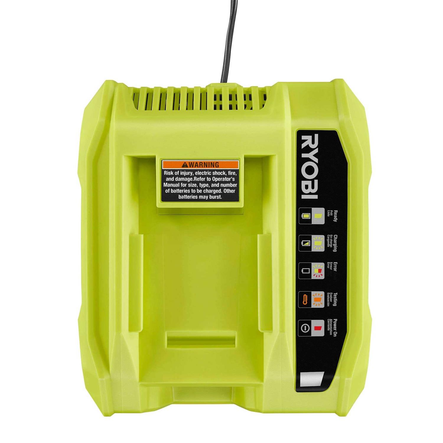 Compatible with all RYOBI 40-Volt batteries. The indicator lights provide the battery charging status and even lets you know if the battery is too hot or too cold to charge. Spend less time charging batteries and more time getting yard work done. for charge times reference the Charge Time Chart or look in the image carousel.