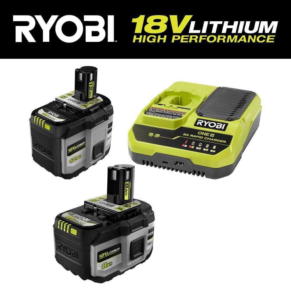 Ryobi One+ 18V 12.0 Ah High Performance Kit with One+ 8A Rapid Charger and 8.0 Ah High Performance Battery