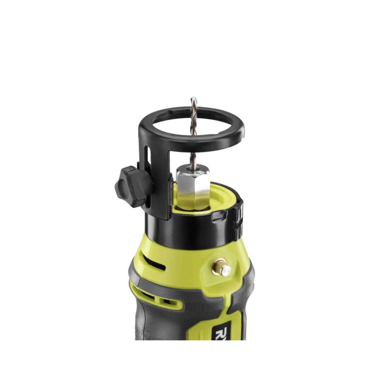 Cutting through drywall or making accents in plywood can be a hassle without the proper tool. You want to be able to do it yourself. Make precise and accurate cuts in different materials with this Ryobi Speed Saw Rotary Cutter. This tool is part of the One+ family meaning you can work cordless with your favorite Ryobi 18v battery. Event the yellow ones. The compact design makes it easy to cut in tight places. With 27,000 rotations per minute, you can precisely cut through drywall, wood paneling, tile, or it can just be used to create decorative accents on wood. It is recommended to use a 1/8-inch bit for wood paneling. Remove the collet nut allows an included 1/8-inch bit adaptor to be installed. Cut at the proper depth with the onboard, removable, guide ring. Or, remove it all together with the included wrench. This is the one stop tool for a comfortable, collected cuts.