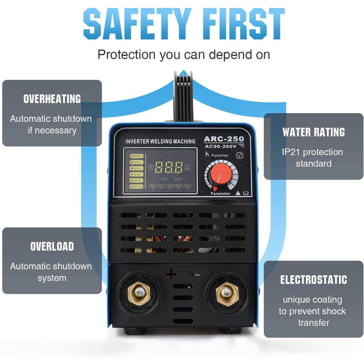 250A ARC Welder Machine, 110/220V MMA Welder, IGBT Digital Display LCD Hot Start Welder With Electrode Holder,Work Clamp, Input Power Adapter Cable 【250Amp 110V&220V Advanced IGBT Inverter Technology】Powerful Welder Capable Of Welding Mild Steel, Weld Steel, Stainless Steel And Cast Iron. IGBT Power Device With Unique Control Mode Improves The Reliability Of Welding Machine 【Energy Saving King】Reduce The Damage Of Copper And Iron,Obviously Increase The Welding Frequency,And Energy-conserving Result Is Remarkable 【Welder】The MMA Welder Is Suitable For Welding Stainless Steel, Mild Steel, Aluminum And Other Metal Materials 【Portable Design】This Welder Features A Easy Carrying Handle,Compact Design, Easy For Translation And Storage. Very Convenient, Can Be Used Anywhere You Need