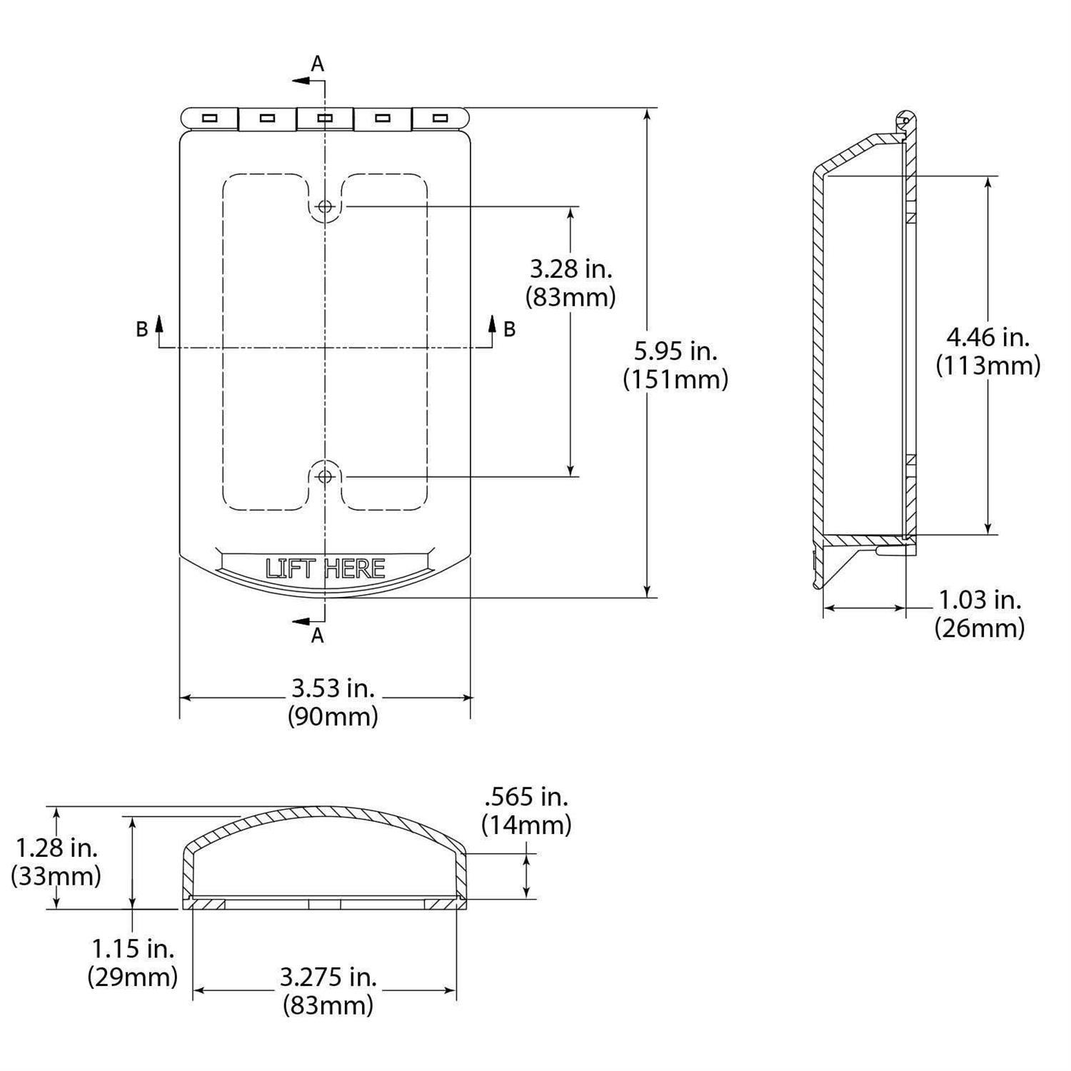 Cover and frame are molded from thick clear polycarbonate material Fast and easy installation Indoor cover protects against vandalism and accidental damage Mounting plate molded into frame 4.46 in H x 3.275 in W x 1.03 in D Safety Technology International, Inc. STI-6519 Single-Gang Clear Protective Polycarbonate Cover – Molded of tough, clear, polycarbonate material, this cover helps protect everything from electrical outlets to push buttons to volume and lighting controls. Inexpensive and highly durable, this high strength continuous hinge cover takes hard knocks in stride while protecting digital keypads, data ports, smaller size pull stations, biometrics and push buttons to name just a few. Complete with mounting plate and hardware. Quick and easy to install, the included frame mounts directly through product mounting plate to an electrical box, eliminating the need to drill additional holes in the wall. Cover helps protect against vandalism and accidental damage. The cover is UV-stabilized so minimal ultra violet damage. This has a locking tab for optional breakaway tie. Typical working properties of polycarbonate are -40 to 250F (-40 to 121C). 94V-2 flammability rating.