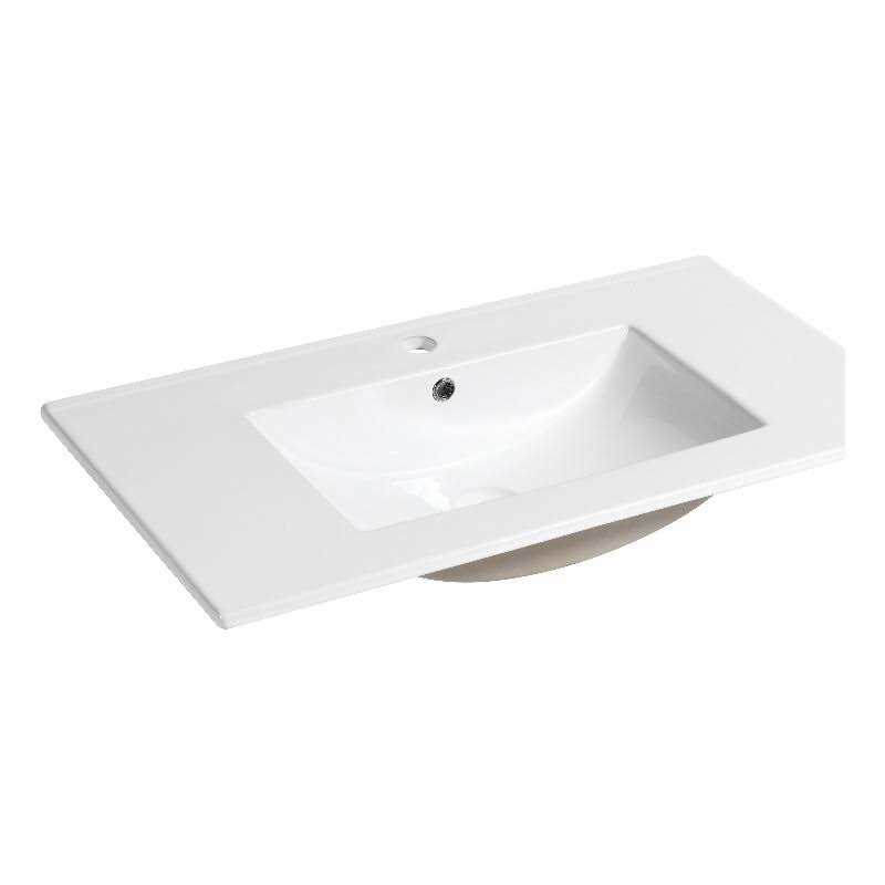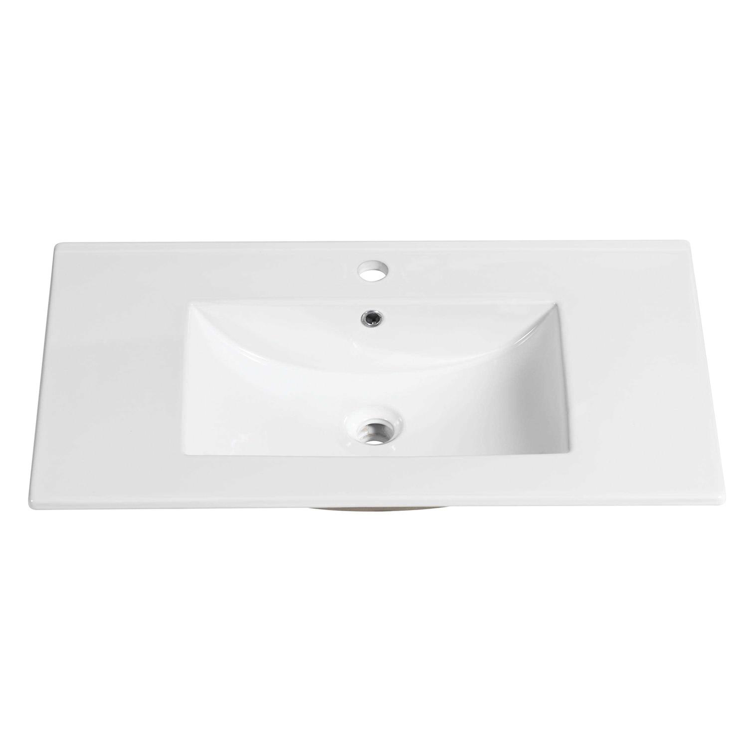Update the look and feel of any bathroom with this contemporary single sink vanity top. Featuring crisp white finish, ceramic construction, the vanity and sink offer a neutral look with clean lines to complement virtually any home. The vanity boasts a rectangular profile with squared corners and is offered in two sizes to accommodate a wide range of spaces. Simple and elegant, this one-hole, single sink vanity is a perfect choice for your new bathroom. Features : Materials: Ceramic Finish: White Generous single sink vanity top perfect for a powder room or guest bath. Wide ledge design allows space for soap or other essentials. White finish is a clean, versatile choice for any decor. Squared corners add a modern touch. 1-hole faucet design for a clean look (faucet not included). Sink shape: Rectangular Drain placement: Center Faucet included: No Overflow hole: Yes Compatible faucet type: Single hole P-trap included: No Specifications : Product Dimensions : 6.89″H x 32″W x 18.3″D.